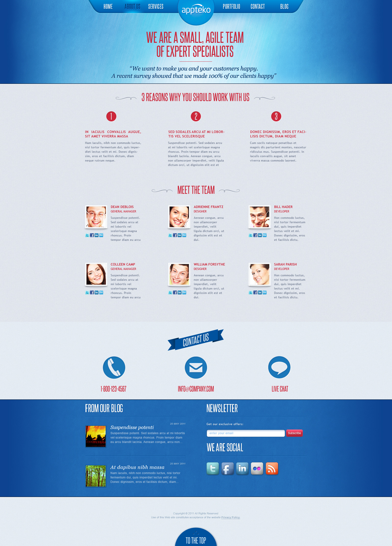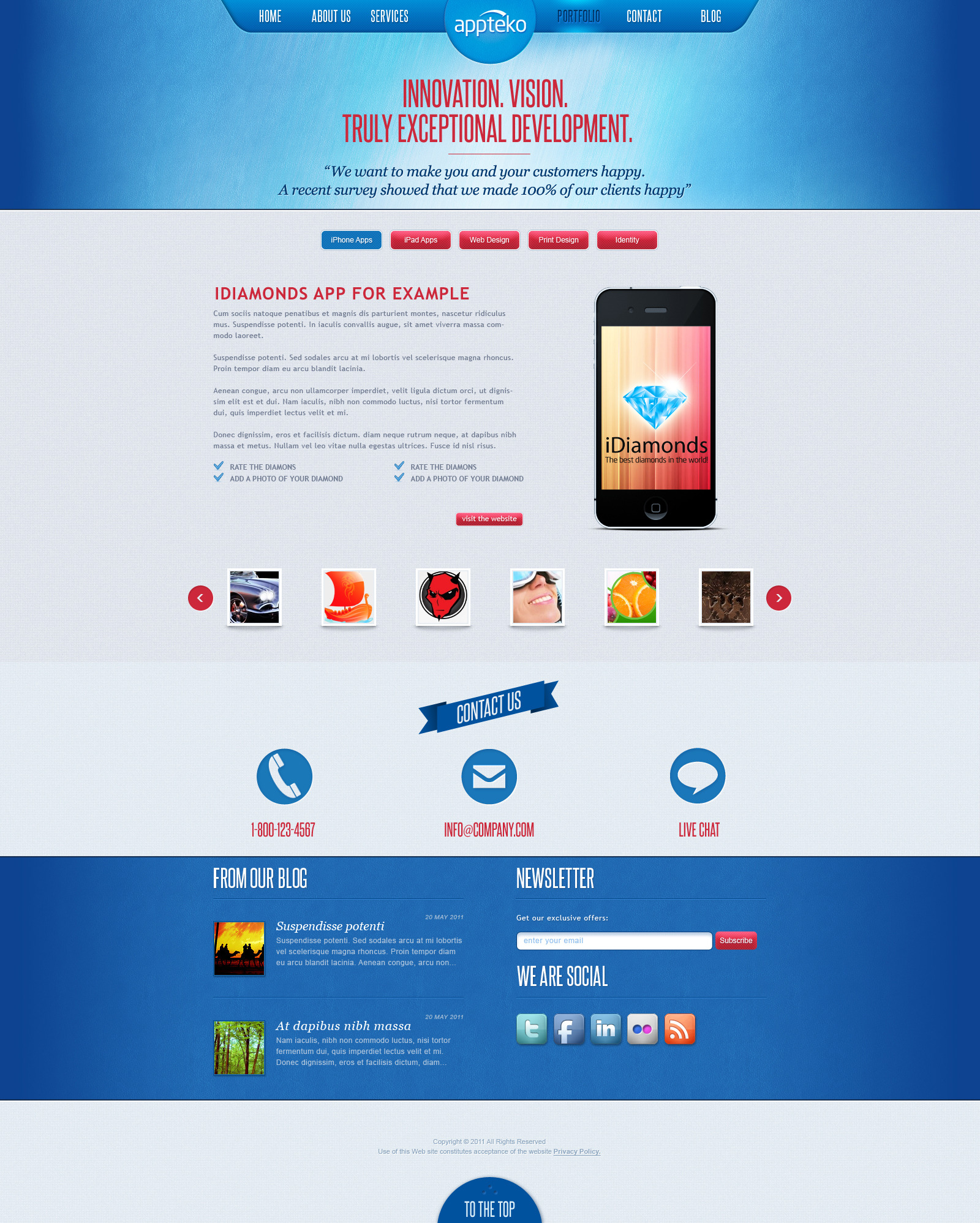 An elegant modern psd template, suitable for any company, who base their work on IT products, Apps, creativity, design studio, advertising, software development or social media.