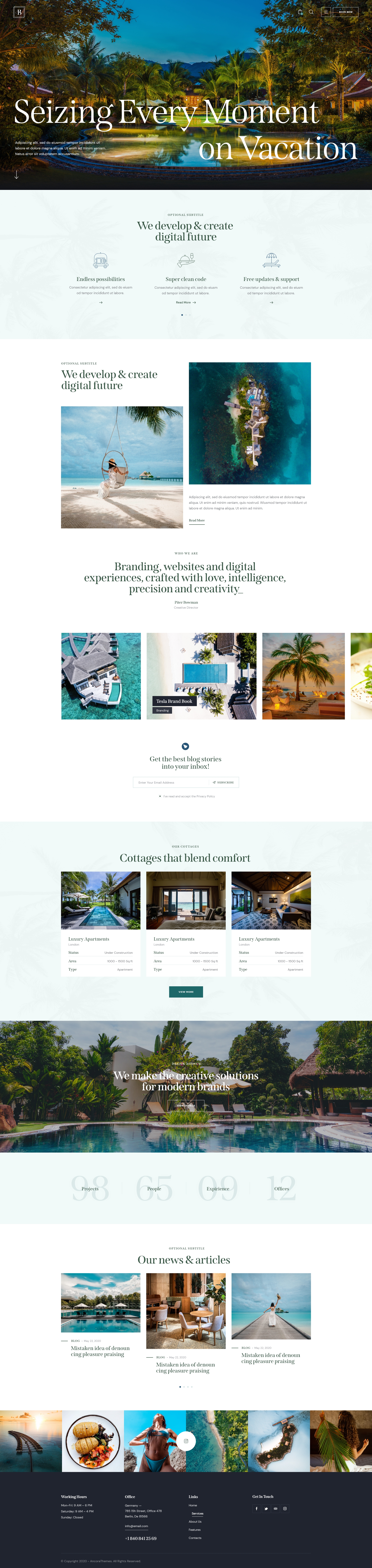 Belicia is a vivid and sunny WordPress Theme. The design intended for building a website for a resort, hotel chain, retreat center, city beach, a beach club, an outdoor pool club, a web page for a summer vacation, holiday getaway or a water park.