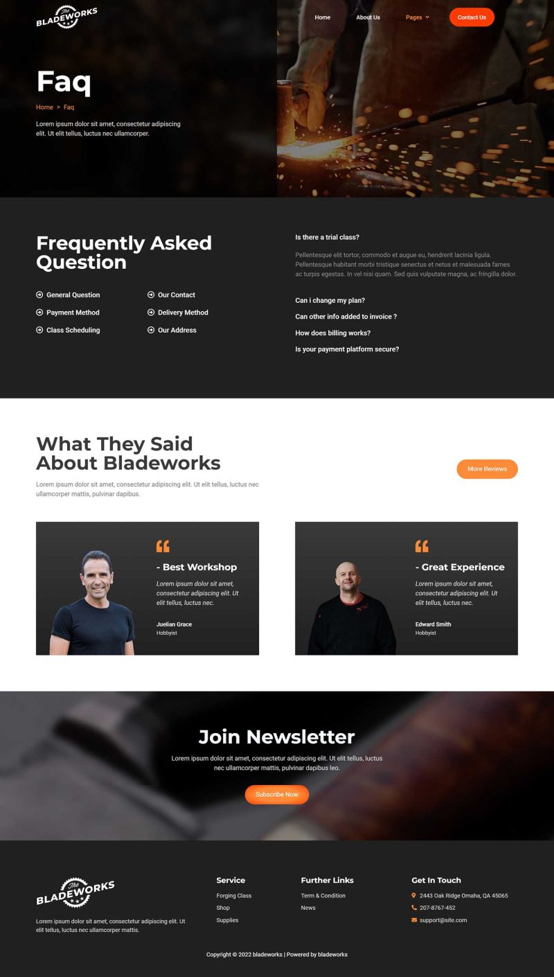 Bladeworks is an Elementor Full Site Kit for quickly and easily creating a full Elementor Pro website for your business featuring a modern and professional design. The kit features a fully compatible design system and professionally hand-picked images for a premium, branded head-start on your next project. Optimized for use with the free Hello Elementor theme, this kit is fine-tuned, fast-loading and fully responsive.