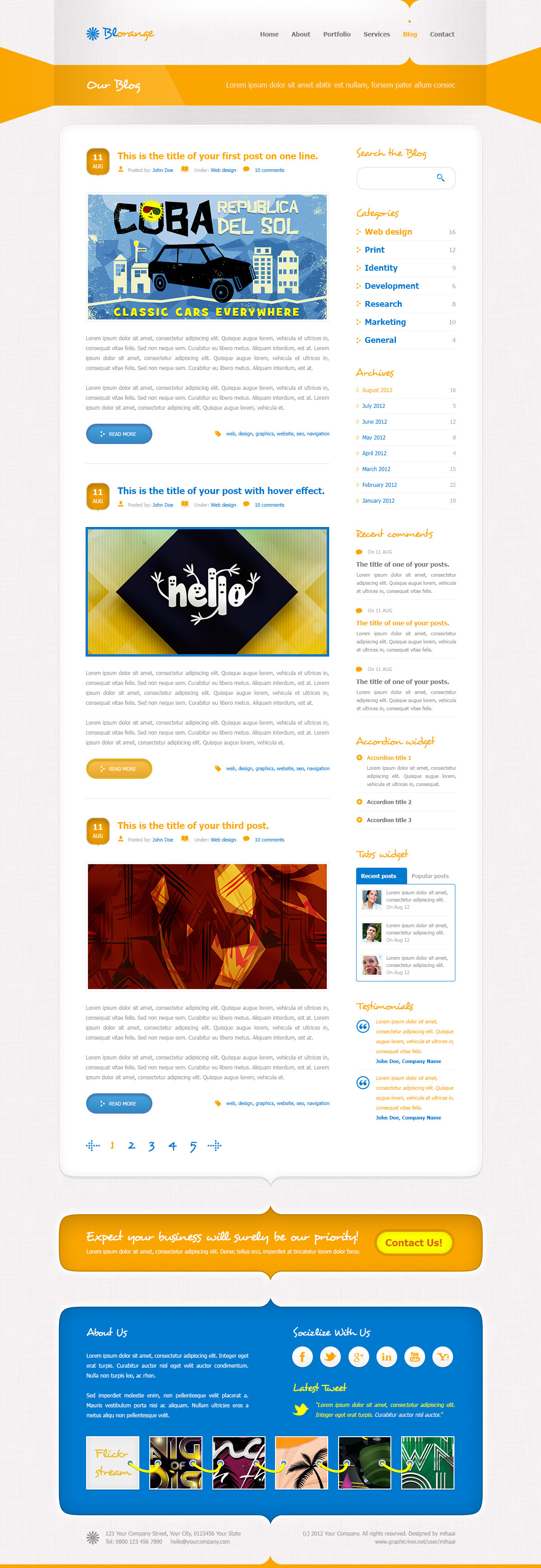 Blorange is a clean and creative multipurpose website template. It is perfect as a personal portfolio or agency website.
