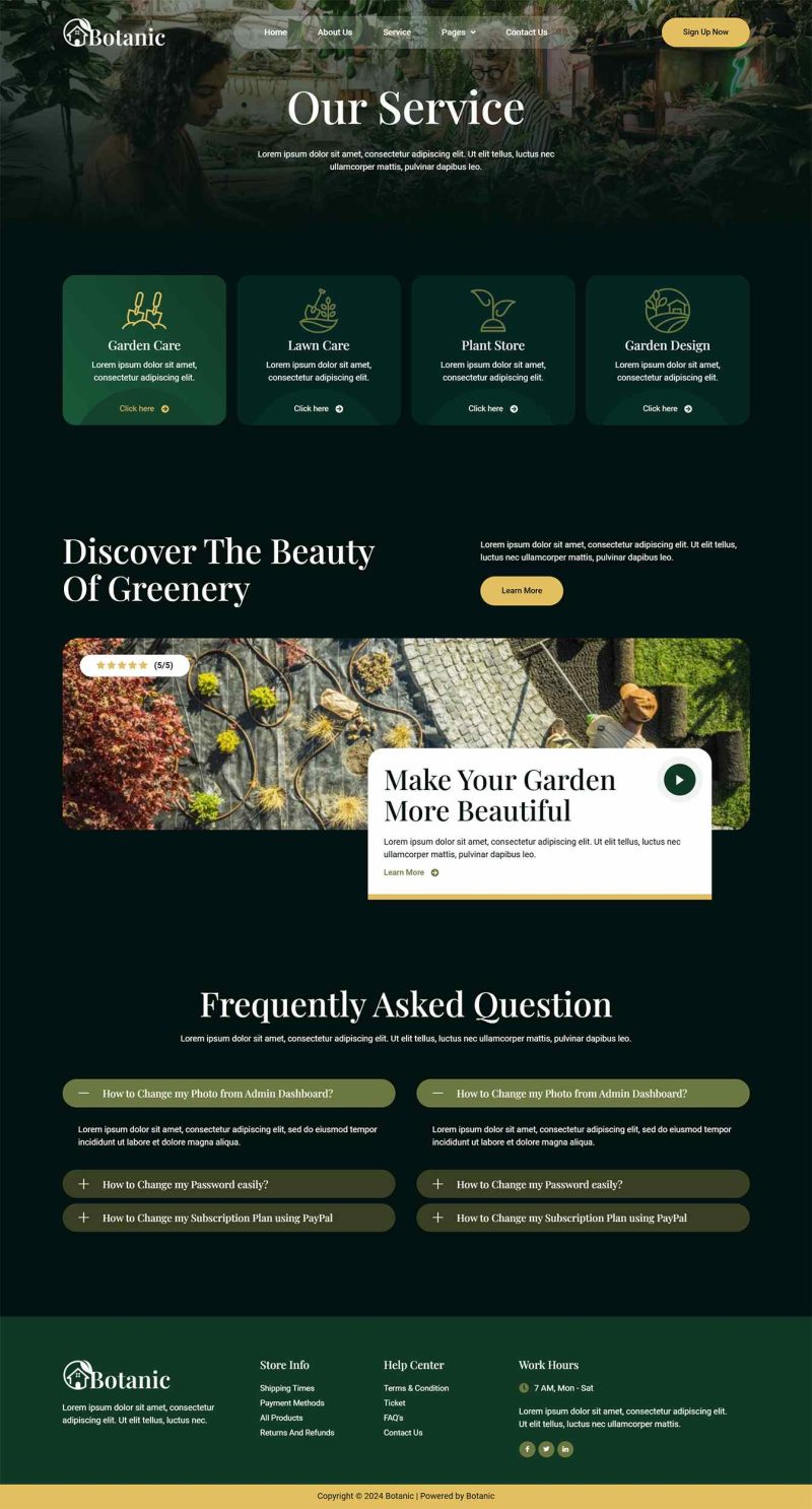 Botanic is an Elementor Template Kit for quickly and easily creating a full website in WordPress for your business featuring a modern and professional design. The kit features a fully compatible design system and professionally hand-picked images for a premium, branded head-start on your next project. Optimized for use with the free Hello Elementor theme, this kit is fine-tuned, fast-loading and fully responsive.