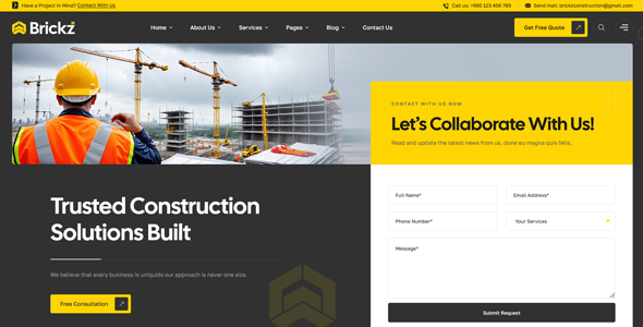 Brickz is a modern Construction WordPress Theme built with Elementor Page Builder and RS Template Builder. Perfect for construction companies, contractors, and builders, it offers easy customization, responsive design, project showcases, and professional layouts to launch your website fast—no coding required.
