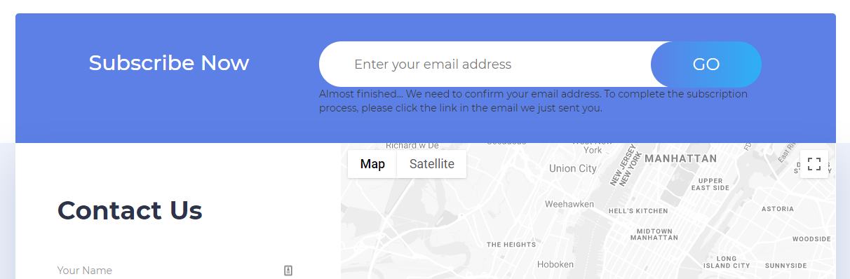 Thank you for coming to our support. In our demo, the Subscribe form displays a message after you submit the form.