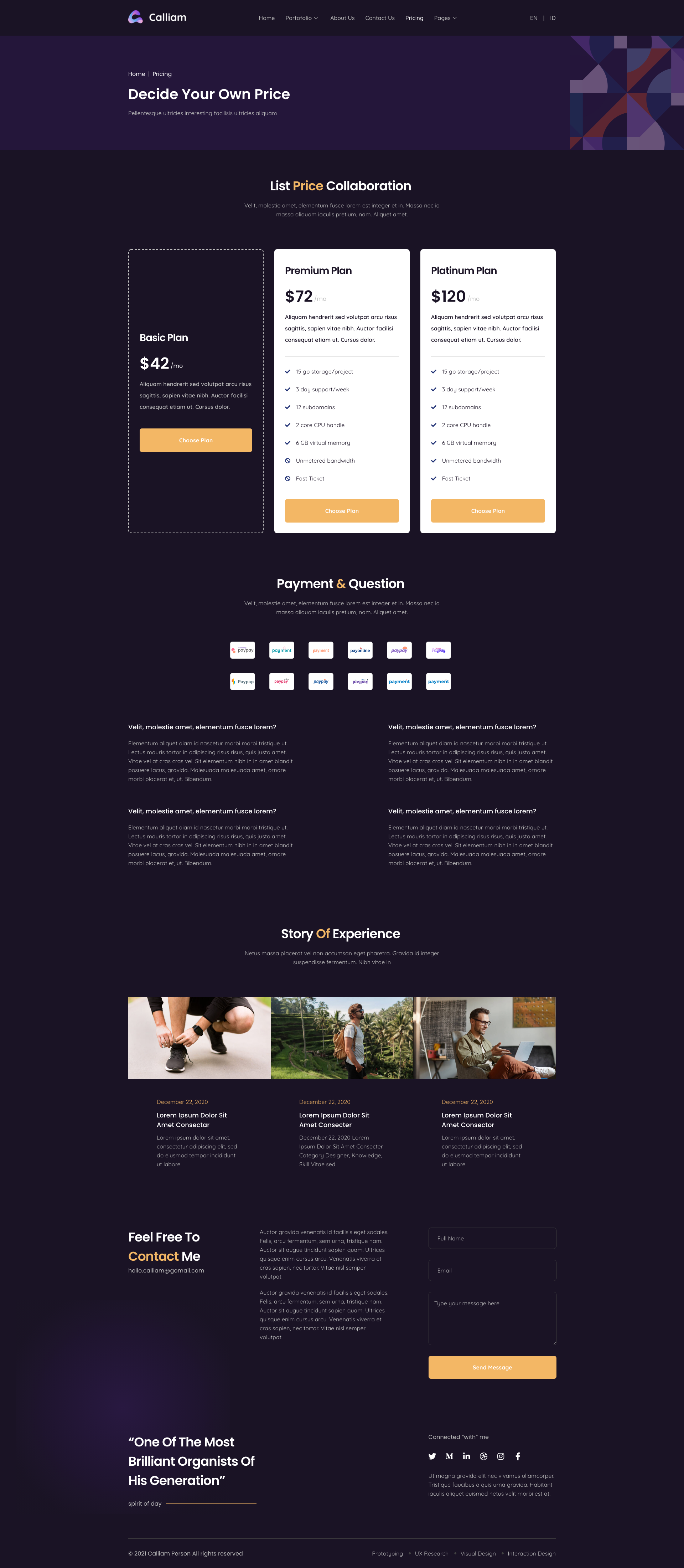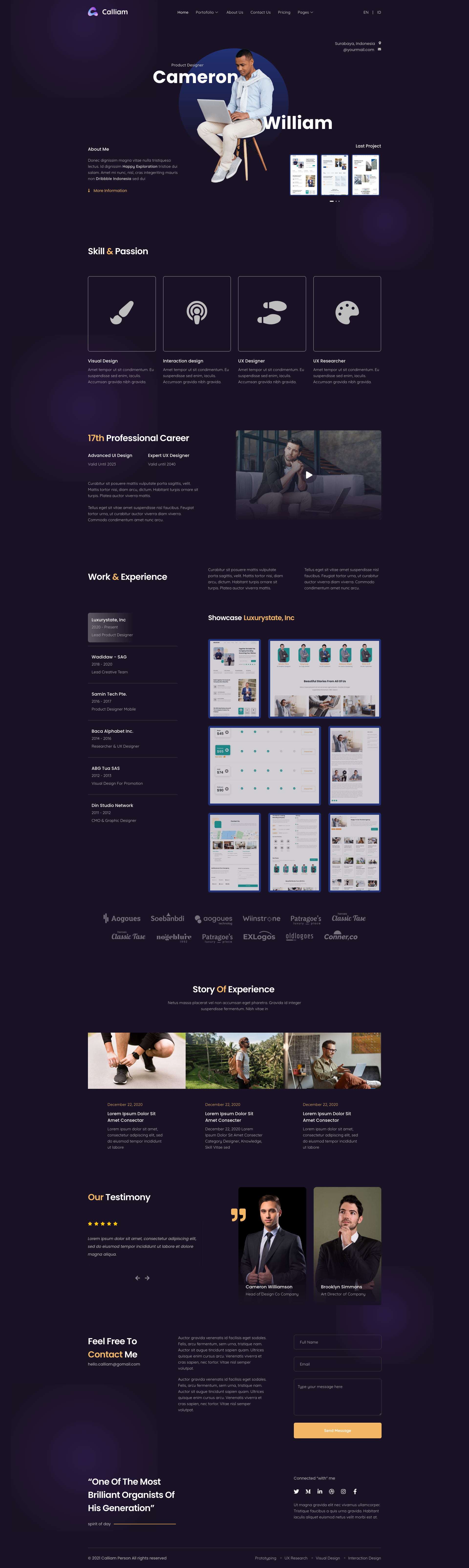 Calliam is a creative CV template Kits that are designed for corporate business who want to showcase their work, services, and professional way. This Template Kits support responsive mobile view. For full information about this template kit, please visit the demo link and enjoy the design.