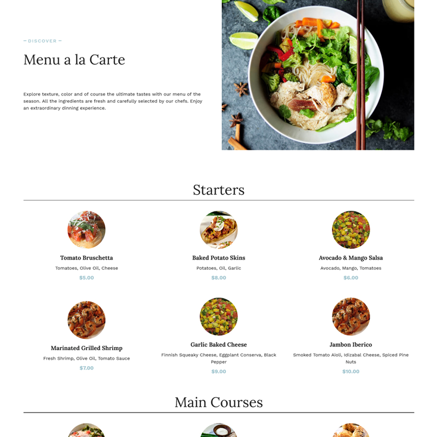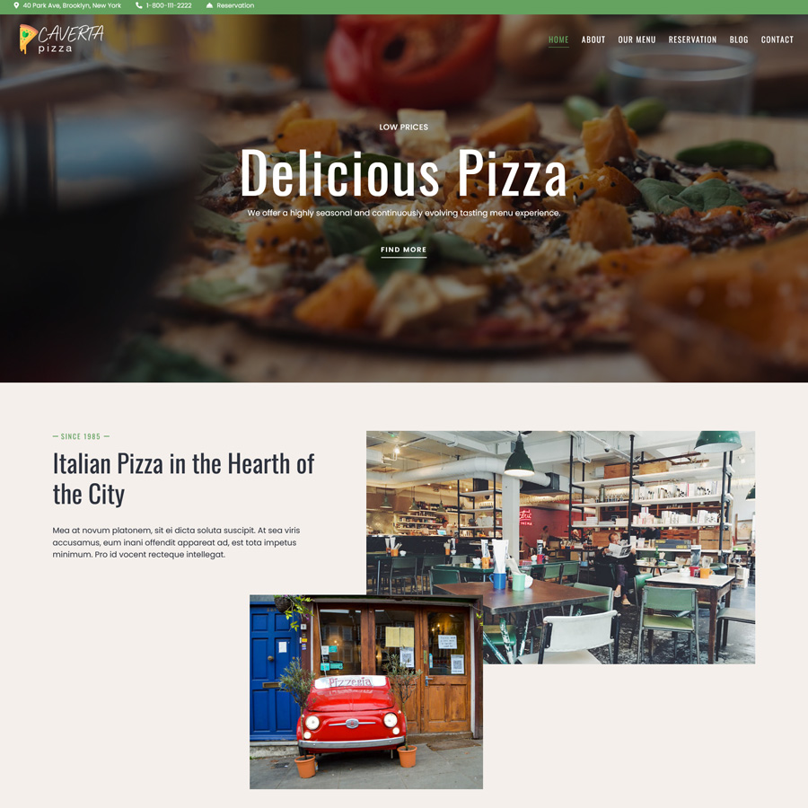 This modern and exquisite theme includes a variety of predesigned layouts for your restaurant homepage, multiple menus, reservation and contact pages, gallery options to showcase your place and dishes. It is compatible with Elementor Page Builder.