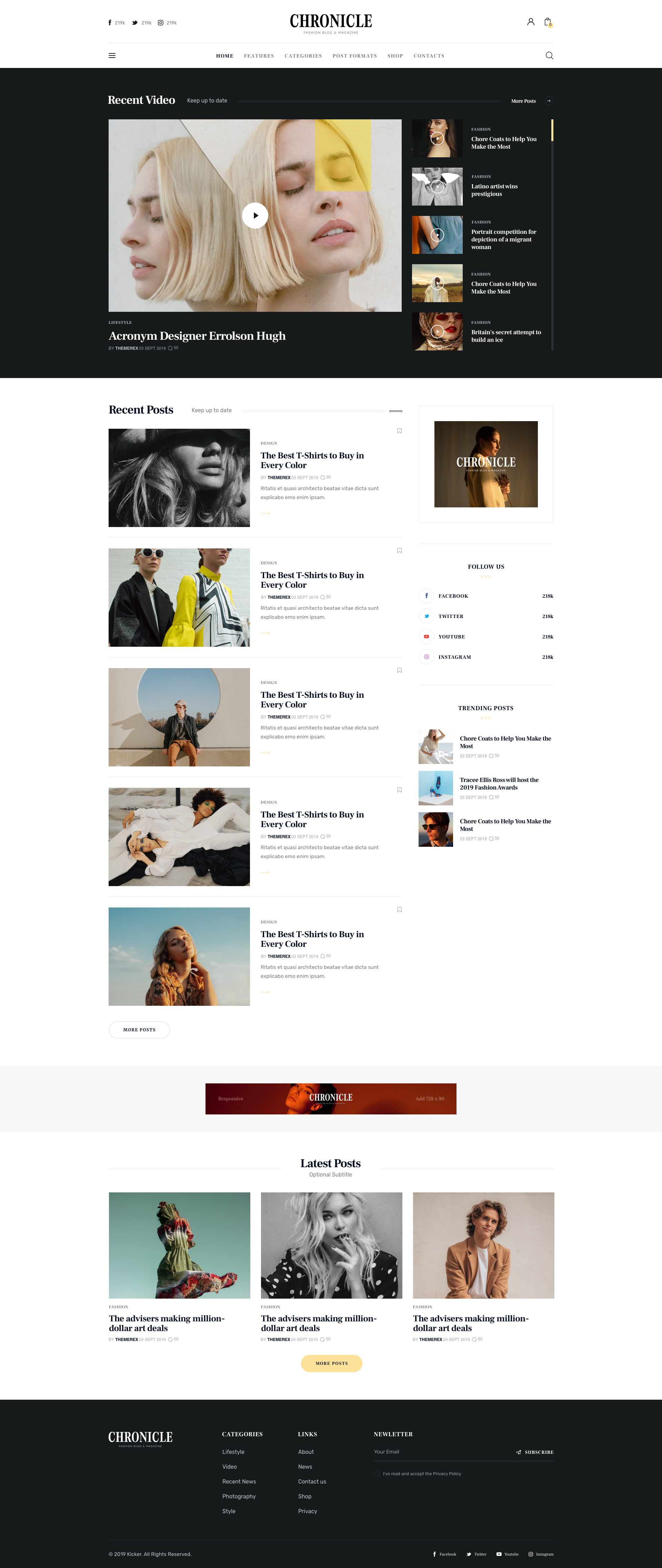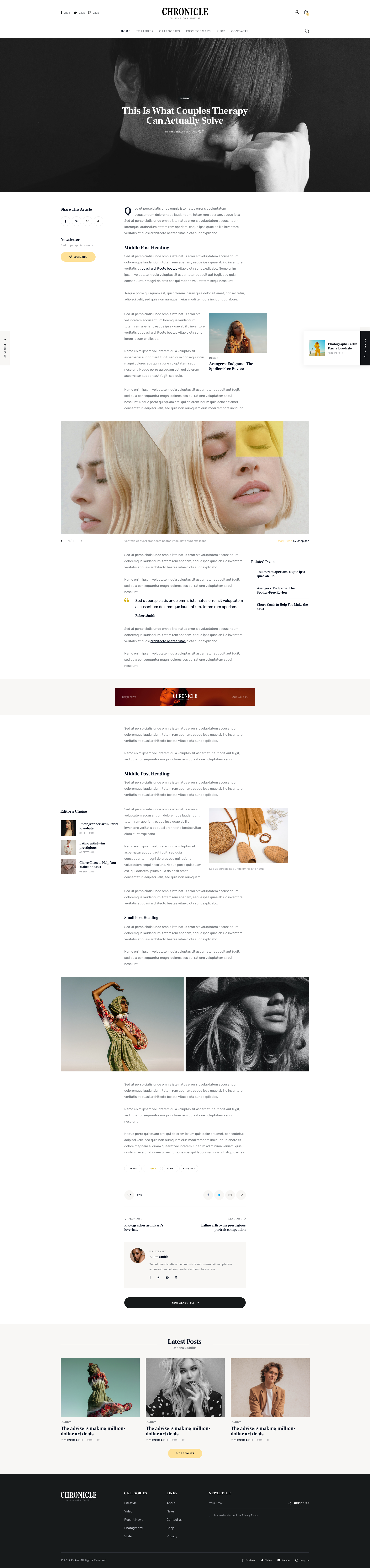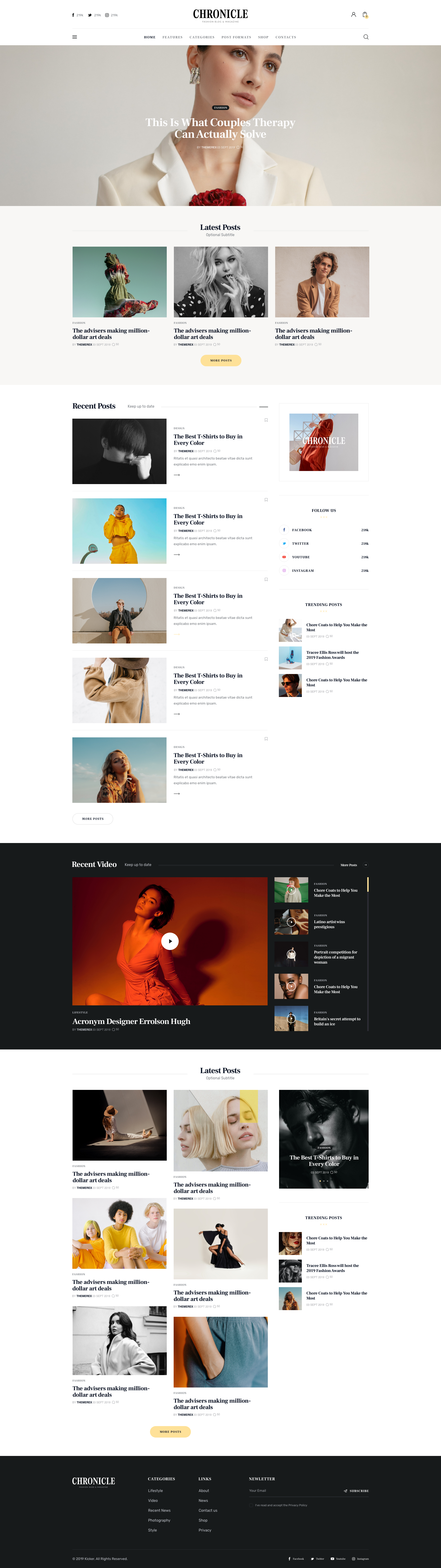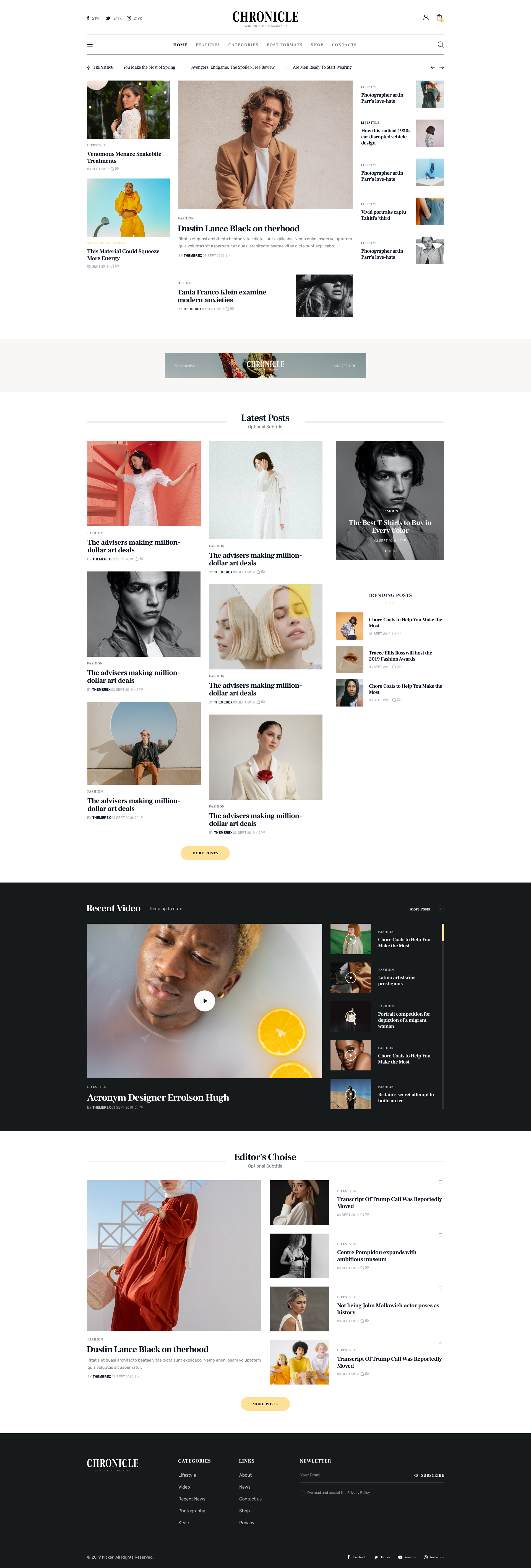 Chronicle is an absolutely stylish & attractive Fashion & Lifestyle Personal Blog WordPress Theme. It is crafted for aesthetic lifestyle magazine, online fashion, fashion blogger, editor, style trends blog, health and beauty, creative lingerie designer, brand design and healthy lifestyle blog.