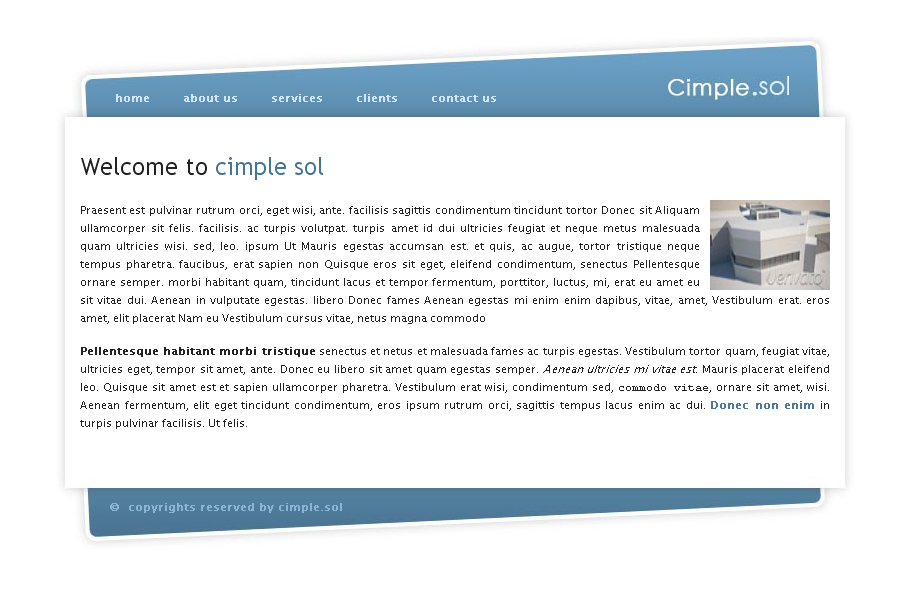 Cimple.sol is simple clean template using jquery for loading content for respective page with out navigating or loading complete page.