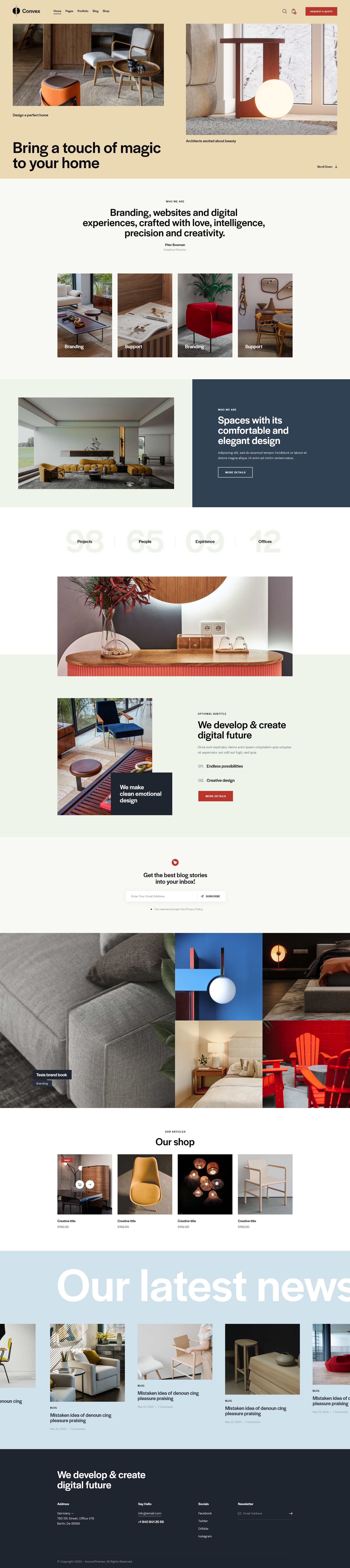 Convex offers unique homepage layouts, gorgeous Slider Revolution as home slider, Elementor to help you build your own page designs, compatibility with such plugins as WPML, Smash Balloon Instagram Feed, AI Engine, elegro Crypto Payment, and a lot of other premium features that will contribute a lot to your company’s success.