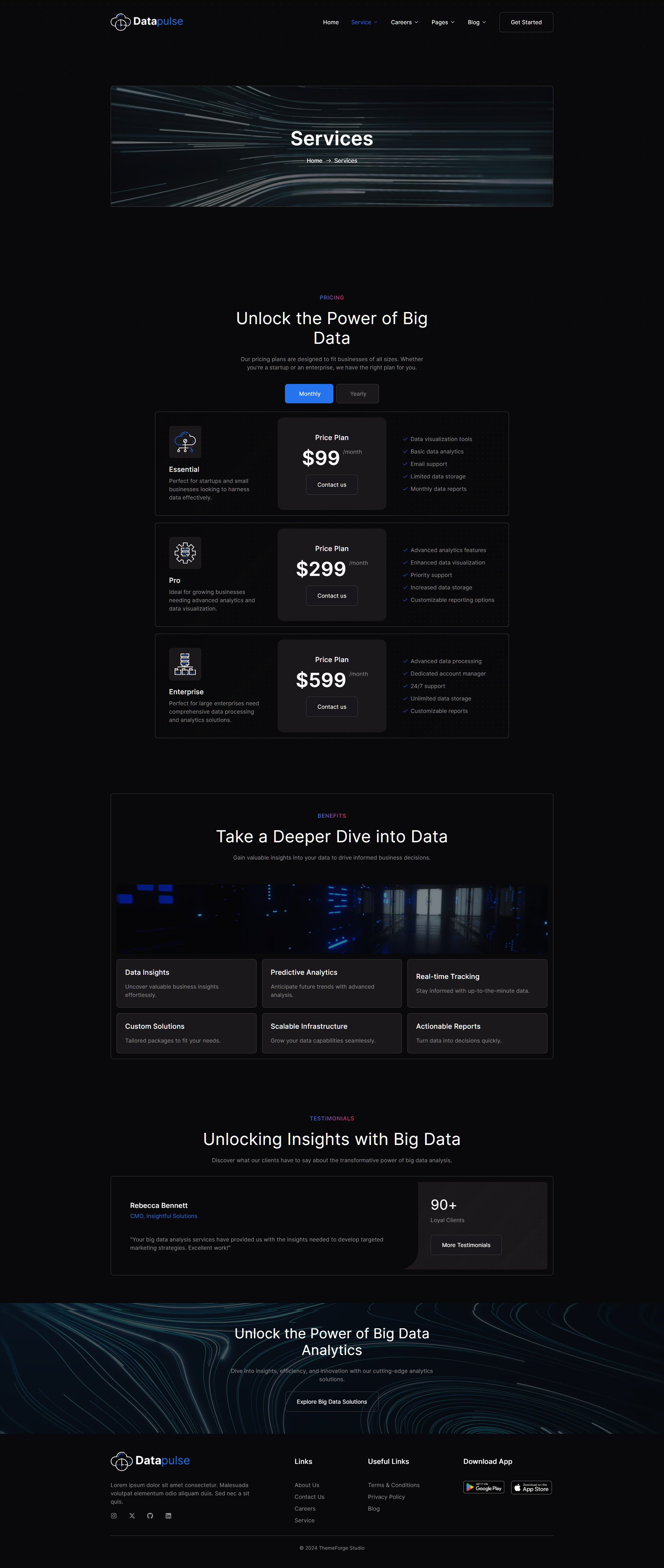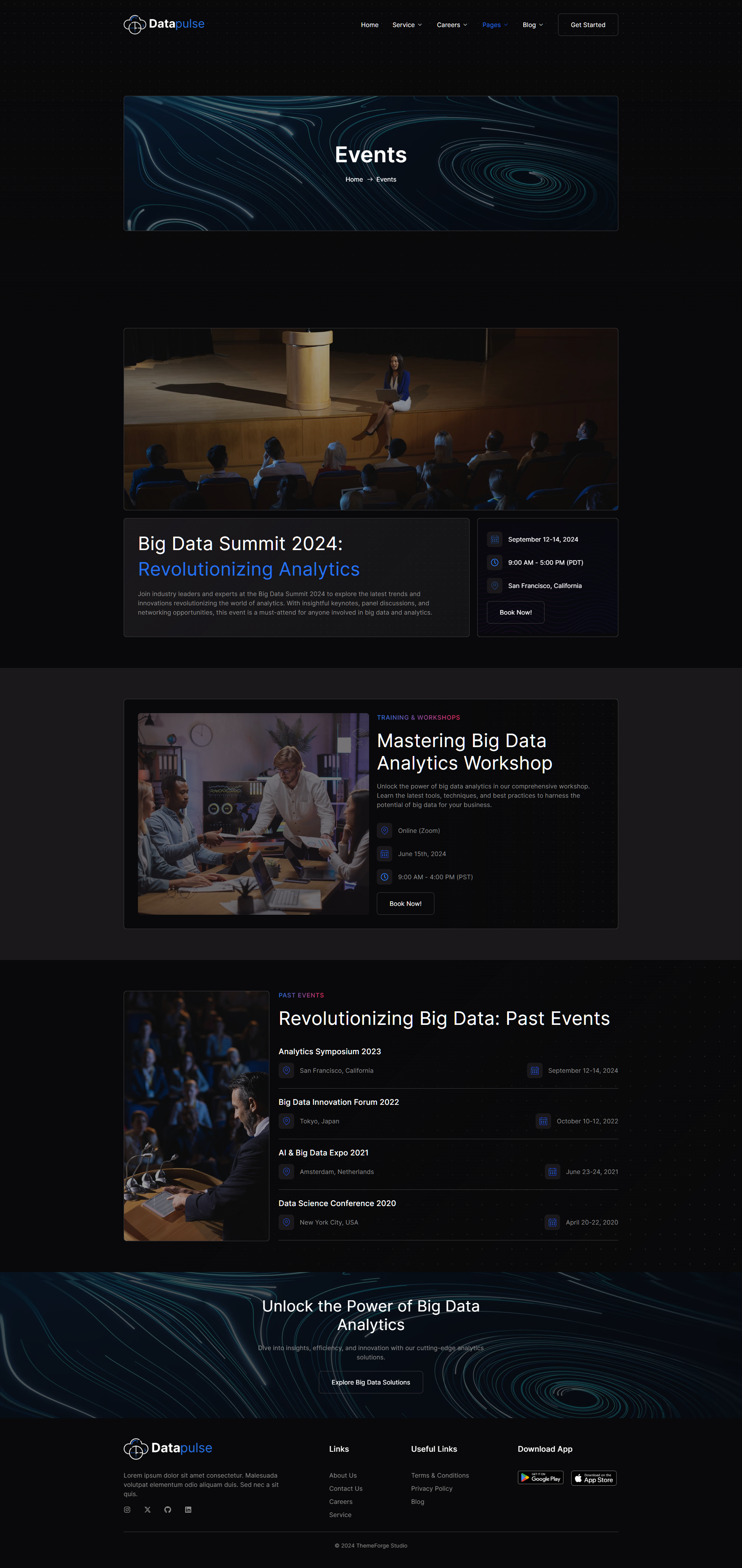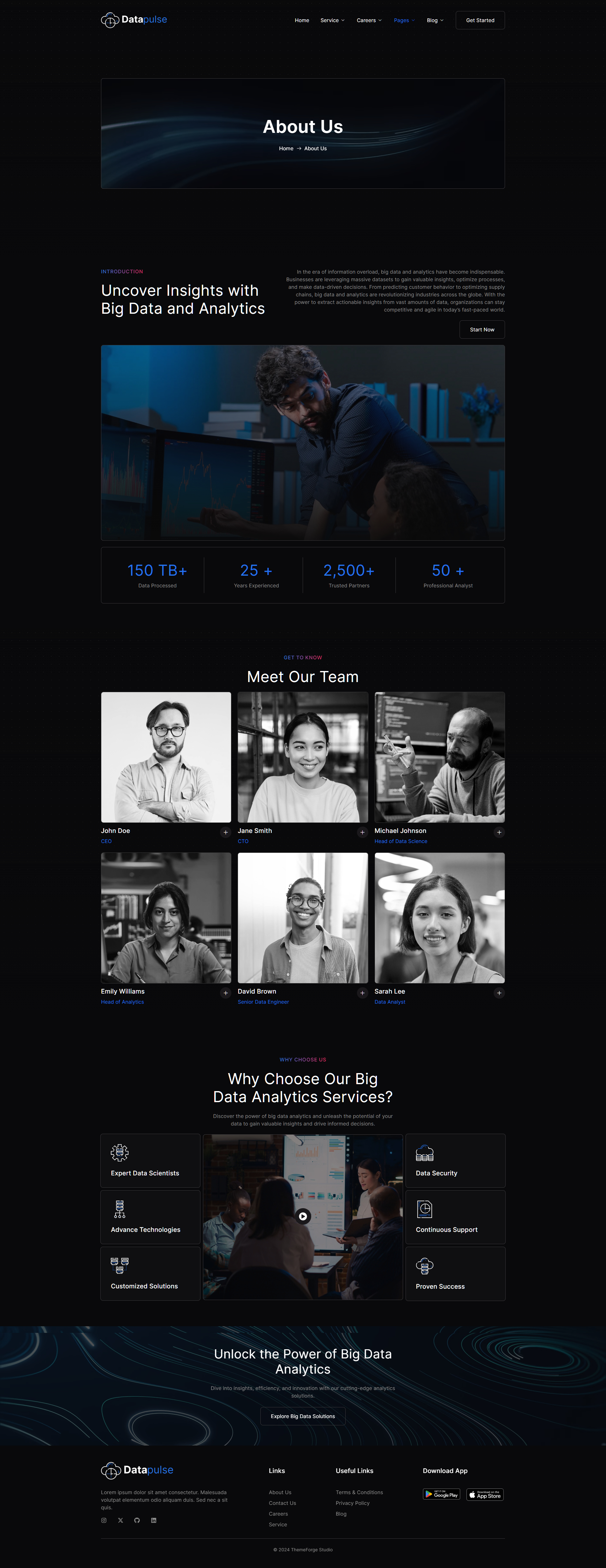 Datapulse is specifically designed to meet the needs of data scientists, analysts, and technology firms focused on Big Data Analytics. Whether you’re presenting complex data sets, detailed reports, or advanced analytics services, this template kit offers the perfect solution. Its sleek, modern design and user-friendly interface ensure that your content is presented in the most engaging and accessible manner possible. The template includes multiple pre-designed pages and sections tailored for showcasing data insights, case studies, team profiles, and service offerings.
