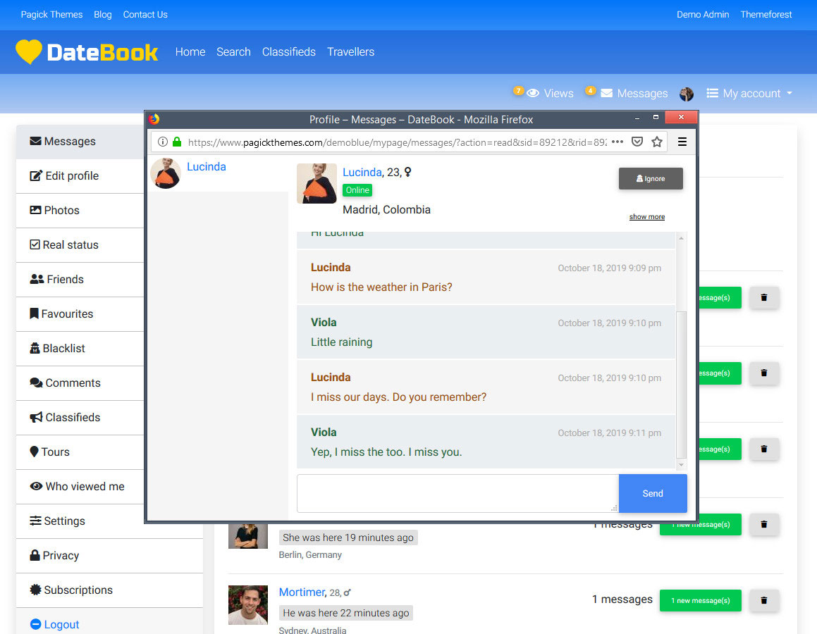 This theme comes with a built in private messaging for your members to chat in real time.