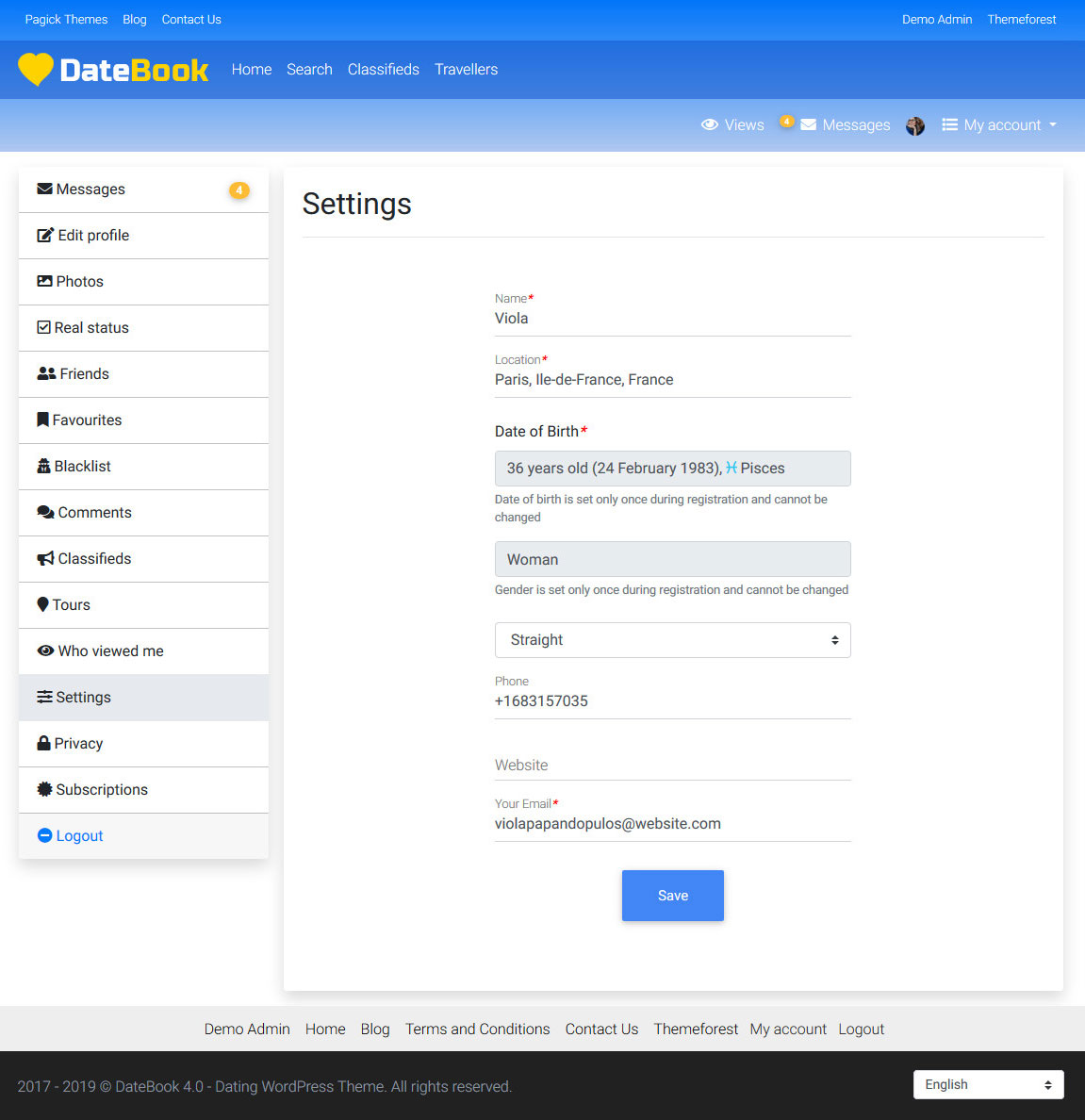 DateBook is the only dating theme in the world that has countries, regions and cities translated into multiple languages.