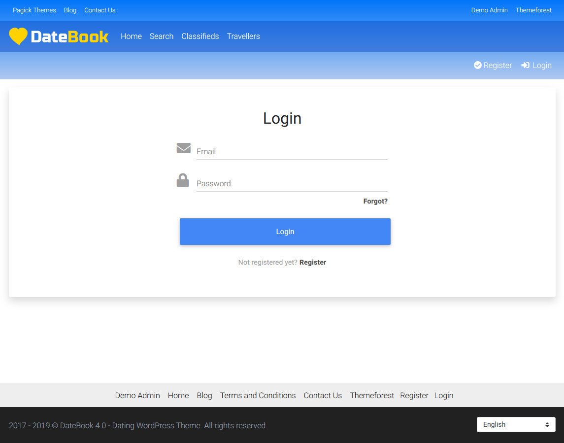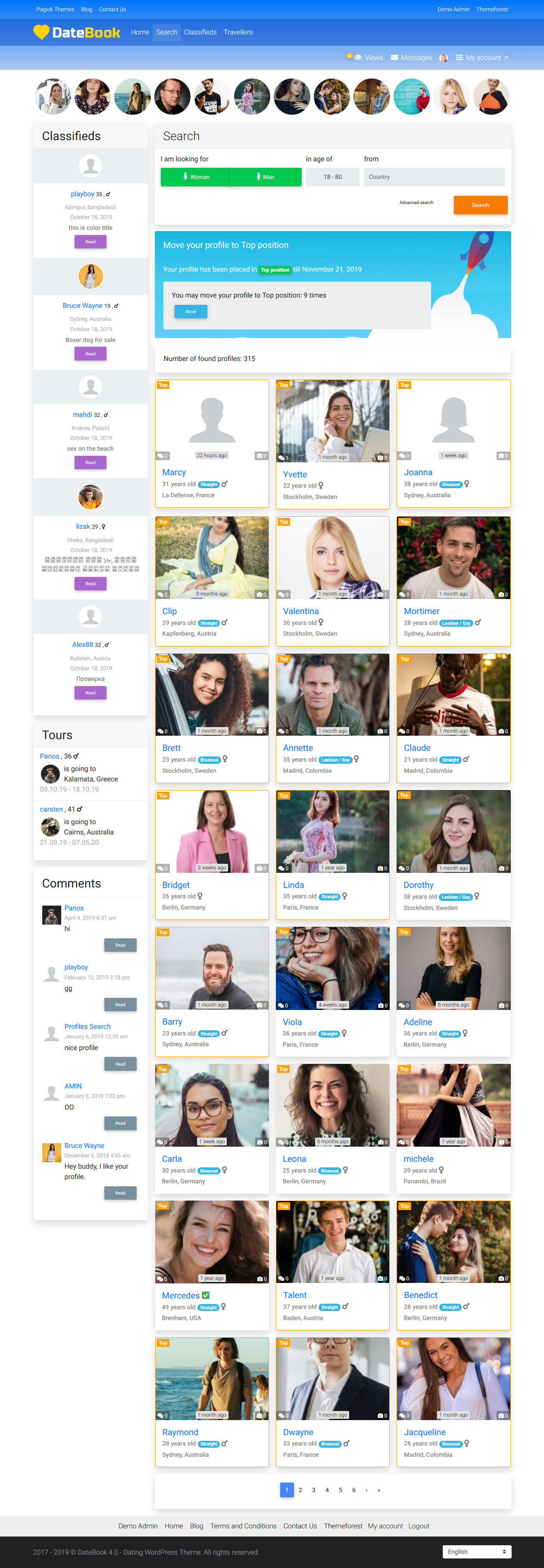 DateBook – the most powerful feature rich dating theme on the market. DateBook has more powerful useful functions than any other theme on ThemeForest. DateBook is smart, fast, and multilingual.
