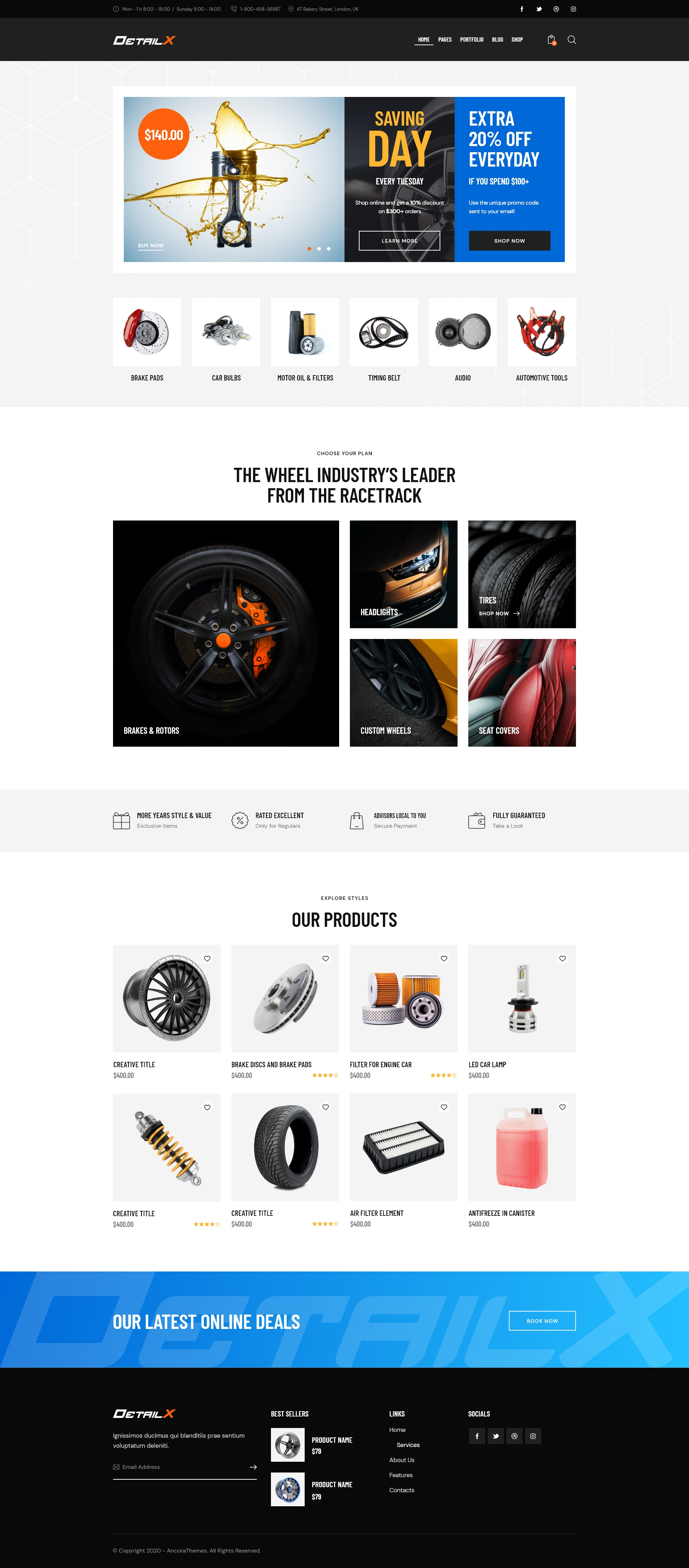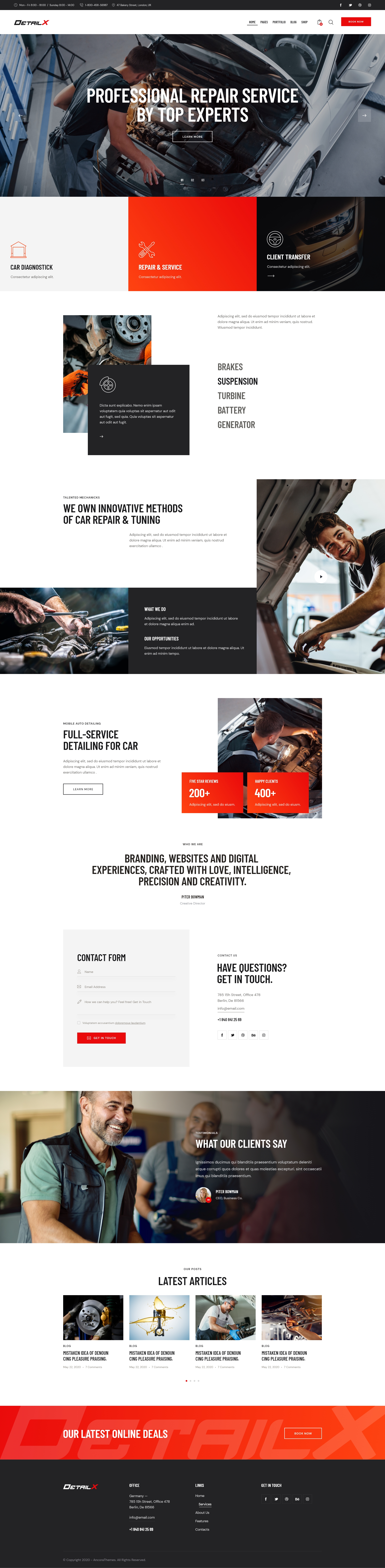 DetailX is a powerful Parking and Automotive WordPress Theme with a high-class design for car parking, car mechanics and car workshops. The theme can be used for car repair shop, car maintenance service, auto mechanic, bodyshop, collision center, car wash services, garage, workshop, auto blog, and other websites related to vehicle maintenance and car services. The theme is also great for wheels & tires shop, auto care, auto painting, auto tuning, body shop, car care center, car show store.