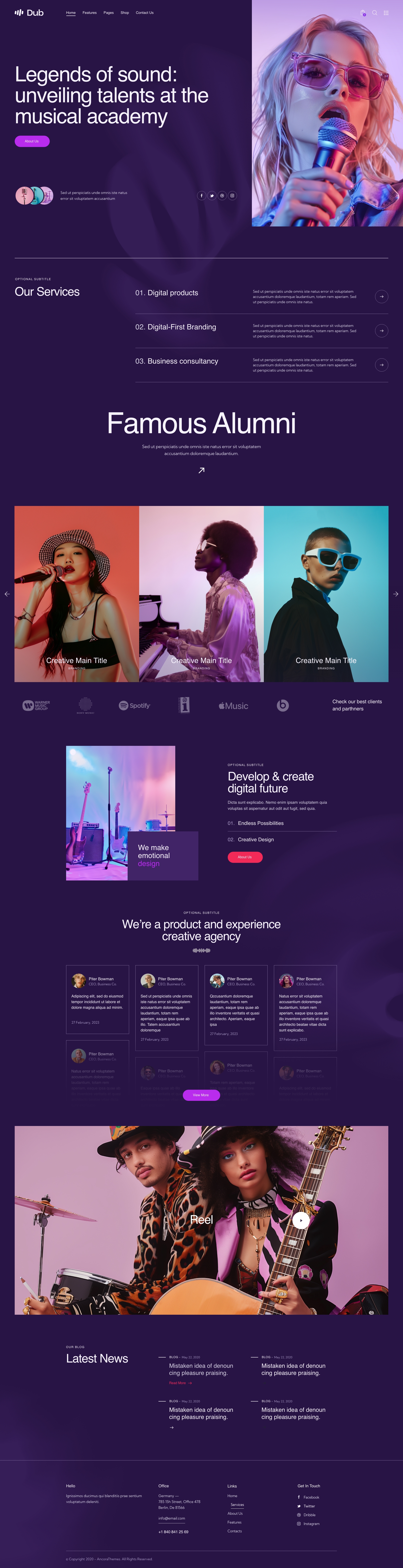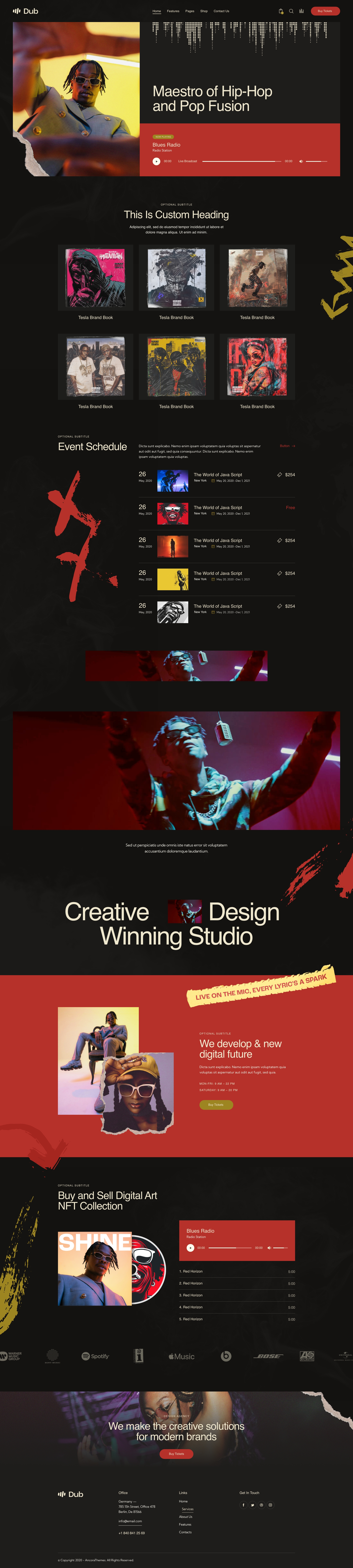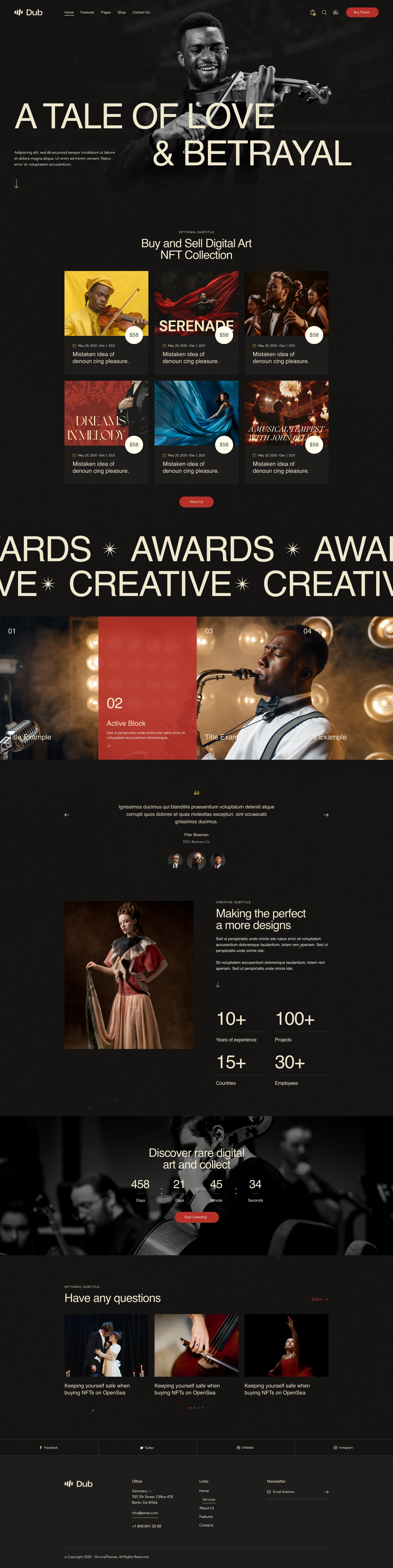 Dub is good for a Concert, Music Festival & Night Club, WordPress Theme with a modern festive design. It was developed specifically for Open Mic Event, Stand-up Concert, Stand-up Artist, Night Club. Also, it fits lounge bars, any event or party website. It can be used for showcasing your DJ, or musician career and can also be interesting for club music fans.