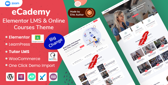 eCademy is a Modern WordPress theme purposely designed and built for Online Training and Education! It is suitable for Educational Institutes, Online Course Providers, Online Training, Learning Management, Vendor Certification Training, eSchool, LMS, Language Schools, Distant Learning Providers, Modern Schooling, Yoga Courses, Health Coaching, Kindergarten, Gym Coaching, Business Coaching, Motivation & Life Coaching, Home Kitchen & Healthy Recipe Coaching, etc. websites.