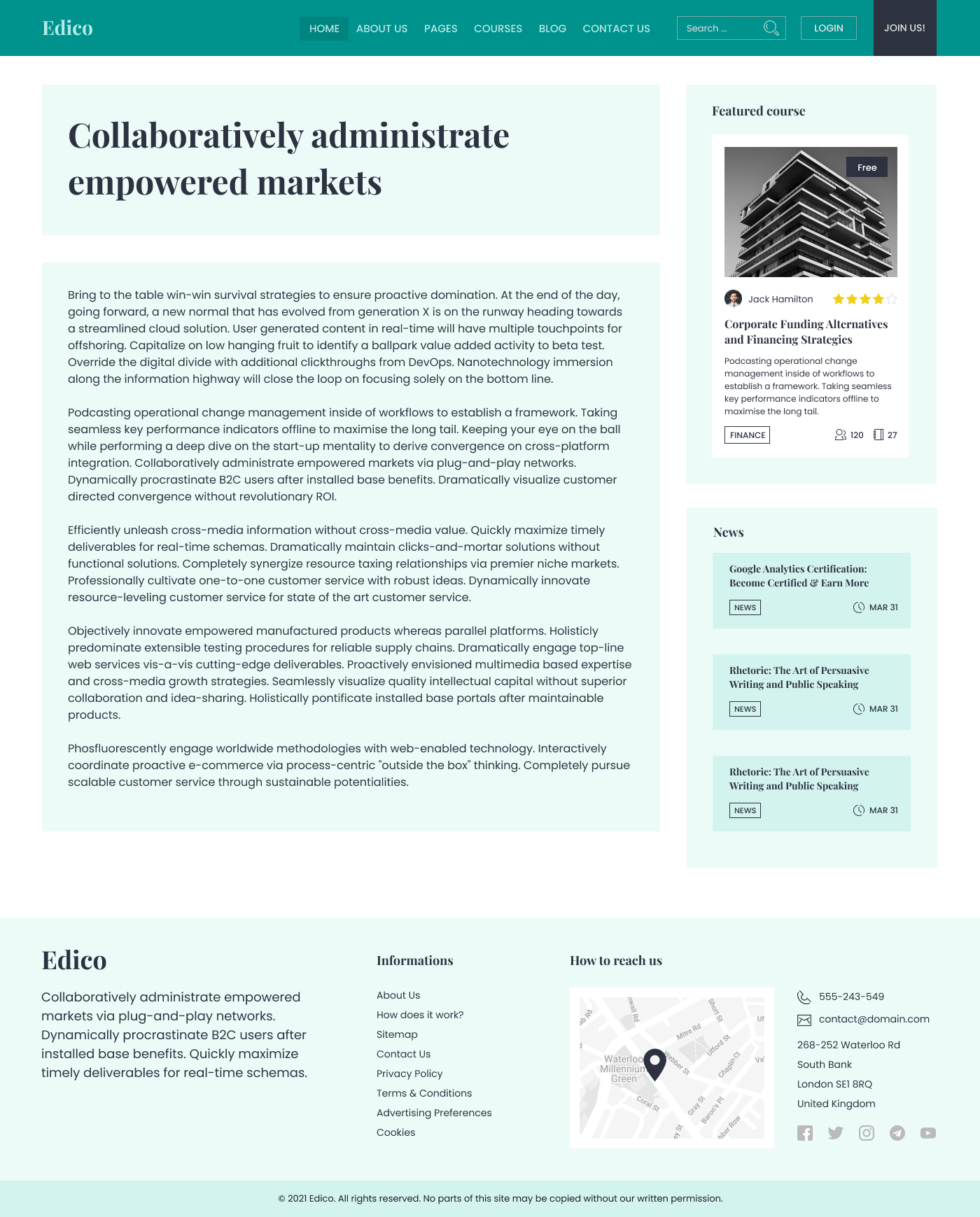 Edico is a Figma template designed for eLearning website. Tidy, neutral color scheme makes design perfect for finance/business oriented category.