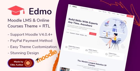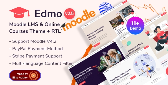 Edmo is a clean, modern responsive Moodle theme purposely designed and built for Online Training and Education niche websites! It suits Online Course Providers, Online Training, Learning Management, Educational Institutes, Distance Learning, Modern Schooling, Yoga Training, Health Coaching, Gym Coaching, Kindergarten, Education LMS, etc. The site owner or admin can easily set up and run with the Edmo theme. Easily accessible online documentation can assist with all essential needs.