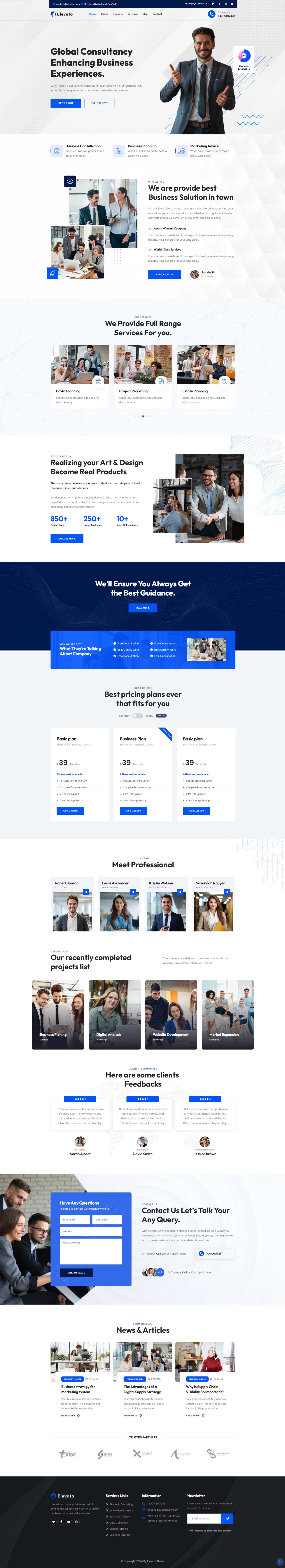 Elevato is designed for business, consulting, corporate, creative agency, digital agency, digital marketing, marketing, one page, portfolio, SEO agency, startup, web design, and web development. internet services, work showcase companies, and many more.