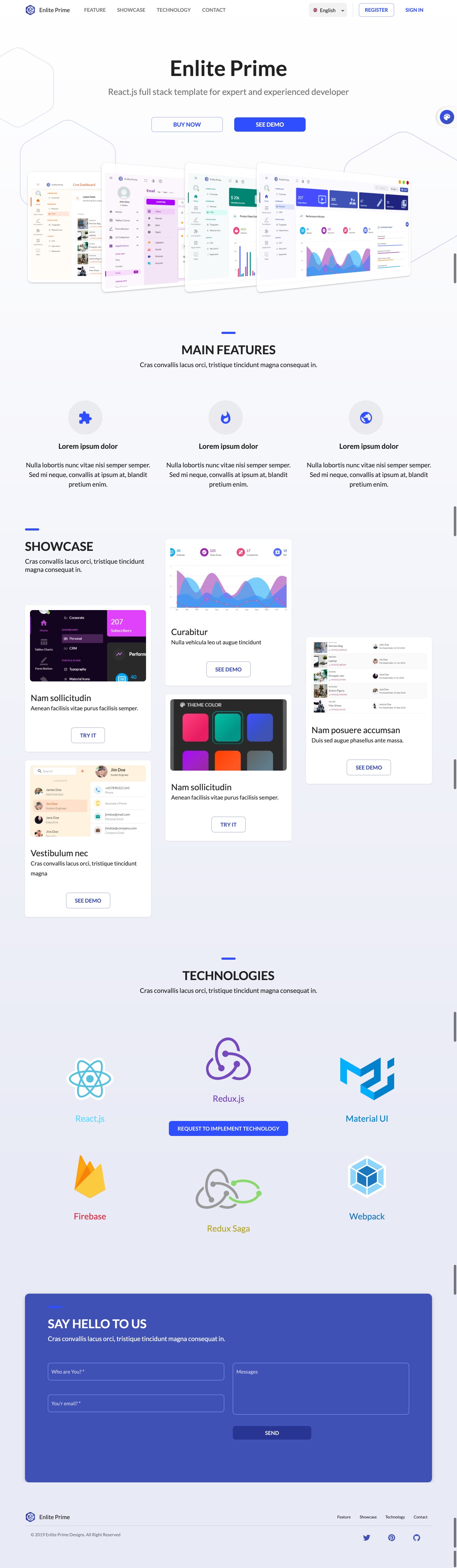 Streamline your management tasks with Enlite Prime, a powerful and versatile solution built with React, Redux Toolkit, Material-UI (MUI), and Firebase integration. Designed with a focus on minimalism and simplicity, this template provides a clean, intuitive interface that enhances productivity and efficiency for any admin panel or management system.