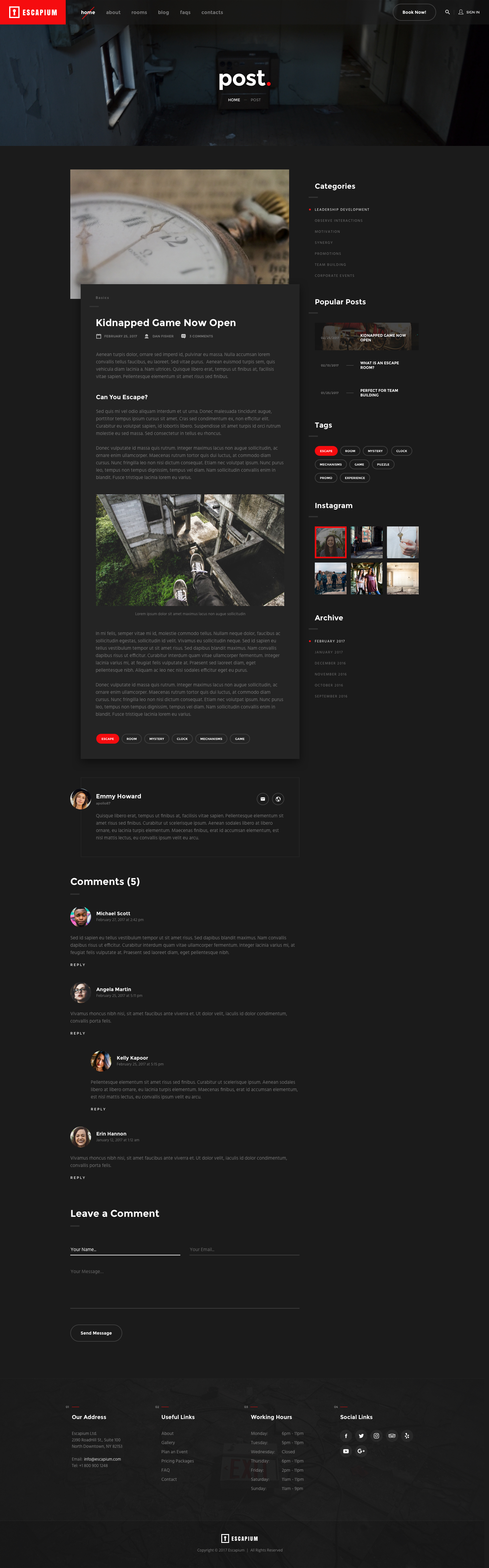 Escapium – Escape Room Game Sketch Template is an excellent idea design for your escape-room or any event based website. Escapium is made in Sketch App. It’s easy to customize the design and convert it into any CMS like Wordpress, Joomla, Drupal, etc.