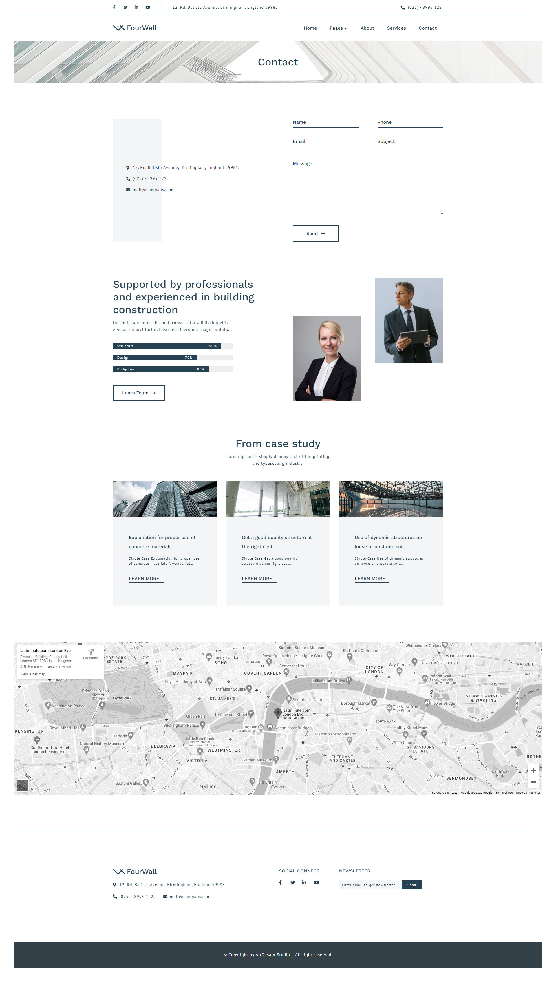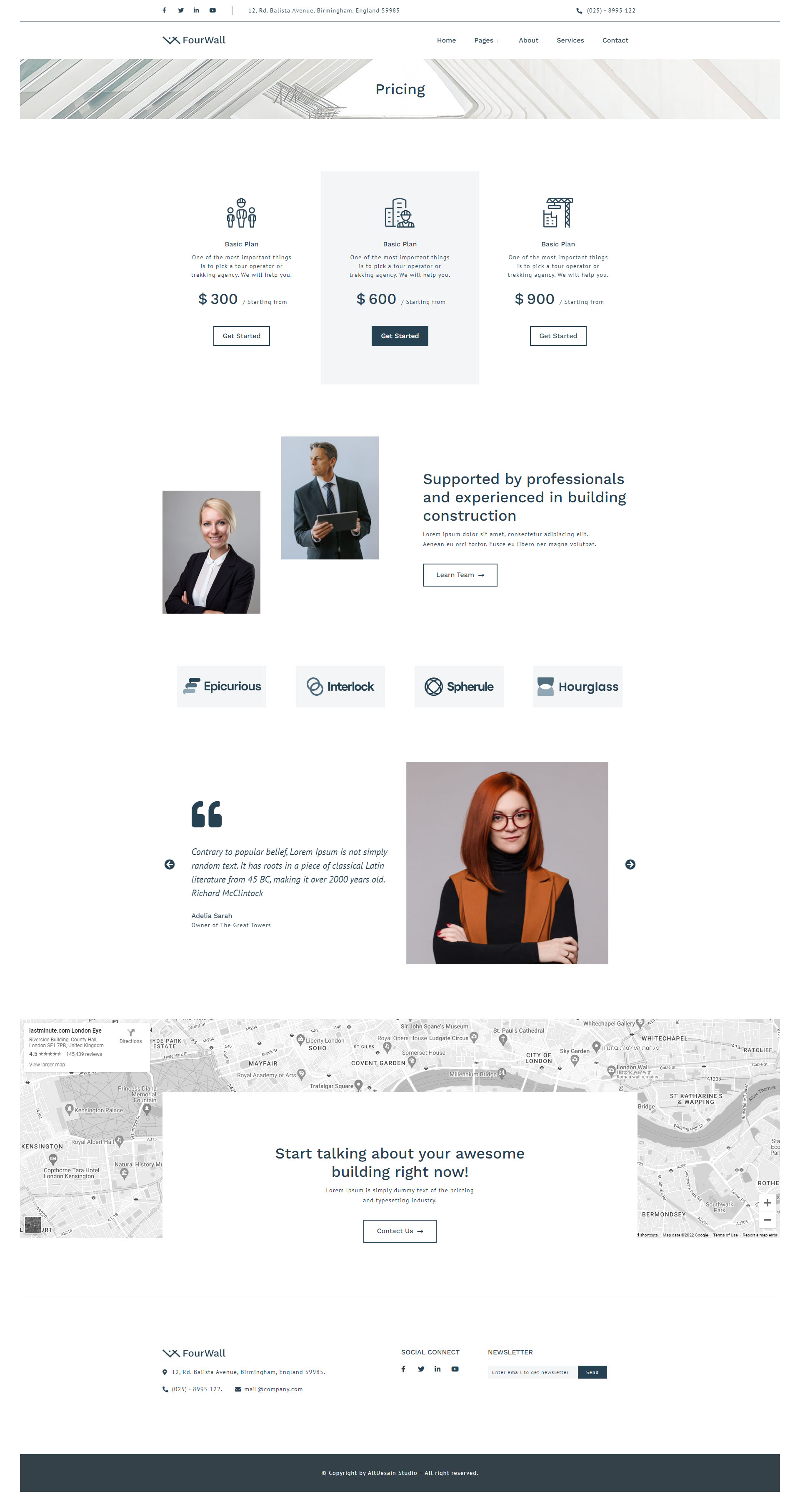 FourWall – Construction Elementor Template Kit. This template kit is a fully responsive, clean and customizable. This template is suitable for use in businesses, such as: construction, constructor, corporate, real estate, industry, company, architect, architecture, civil engineering, construction worker, building and others.
