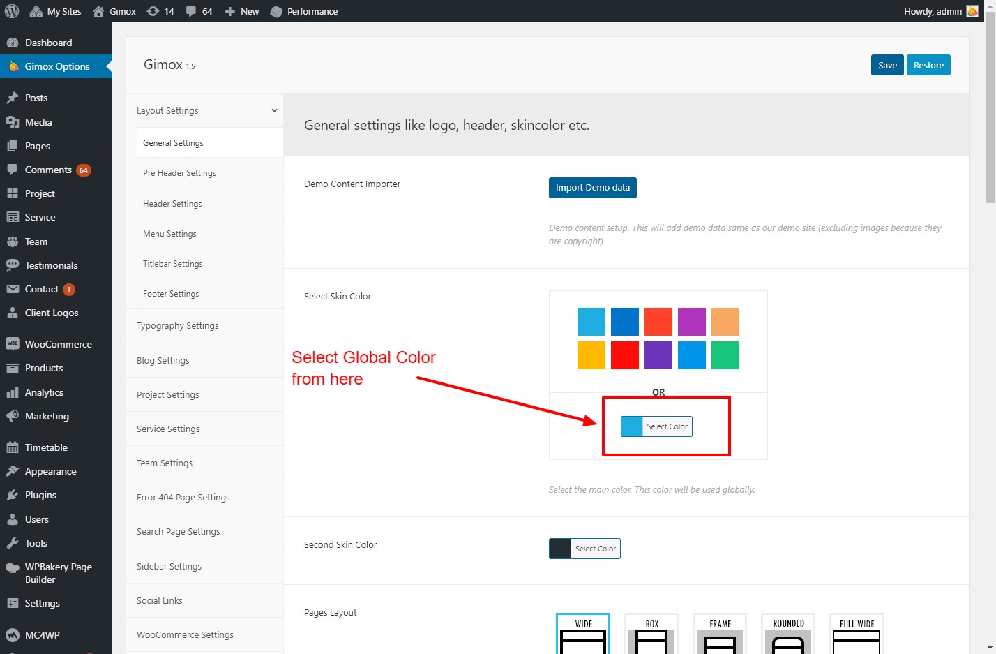 Yes sure. Just go to Admin > Gimox Options section and select the color in the “Skin Color” option. Please see screenshot given below:
