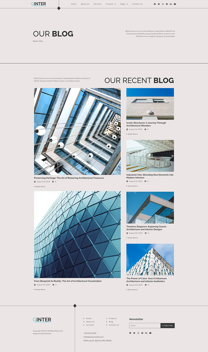 Meet, Ginter specially designed for Architecture websites! The template kit comes with an ideal selection of templates for Interior Designer, Architecture, Real Estate, and Furniture website. This kit has a modern and unique design with a 100% fully responsive layout, easy installation, and sure very easy to customize because using Elementor so you don’t need a single line of coding!