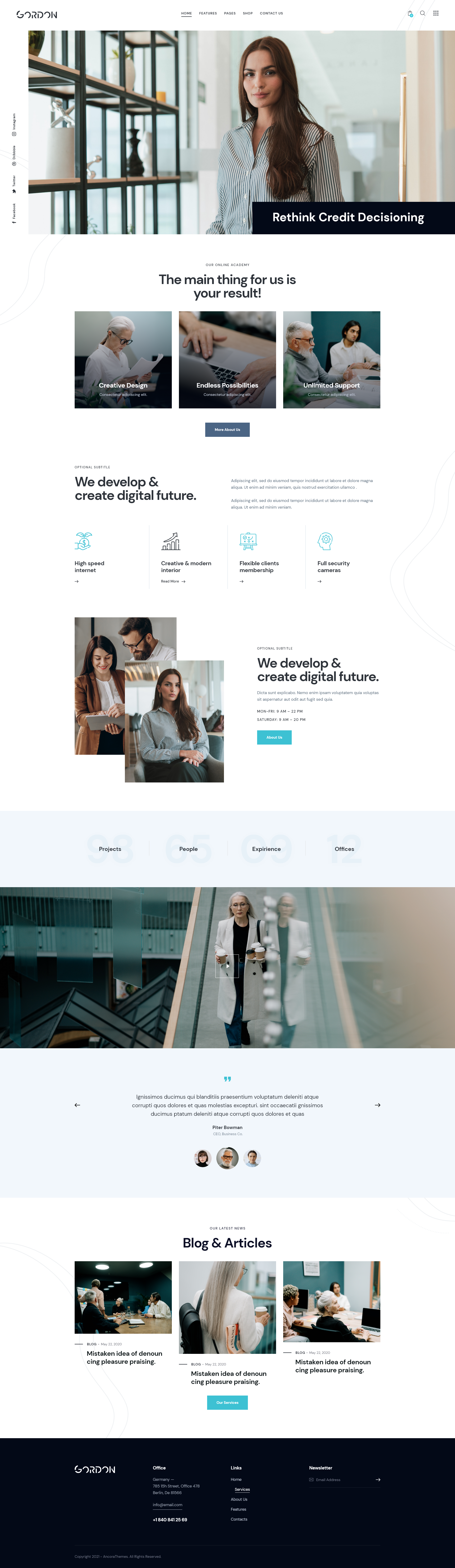 Gordon’s clean and modern design will give your website a new fresh look; its layout is perfect for mentioning all your key services which will help you establish a reputation of professionalism and reliability. Besides, Elementor support allows you to create even more layouts at your taste. Different blog styles let you present useful information on taxes and accountancy in a more attractive way. This business theme is SEO friendly and totally responsive which is a key factor for user attraction.