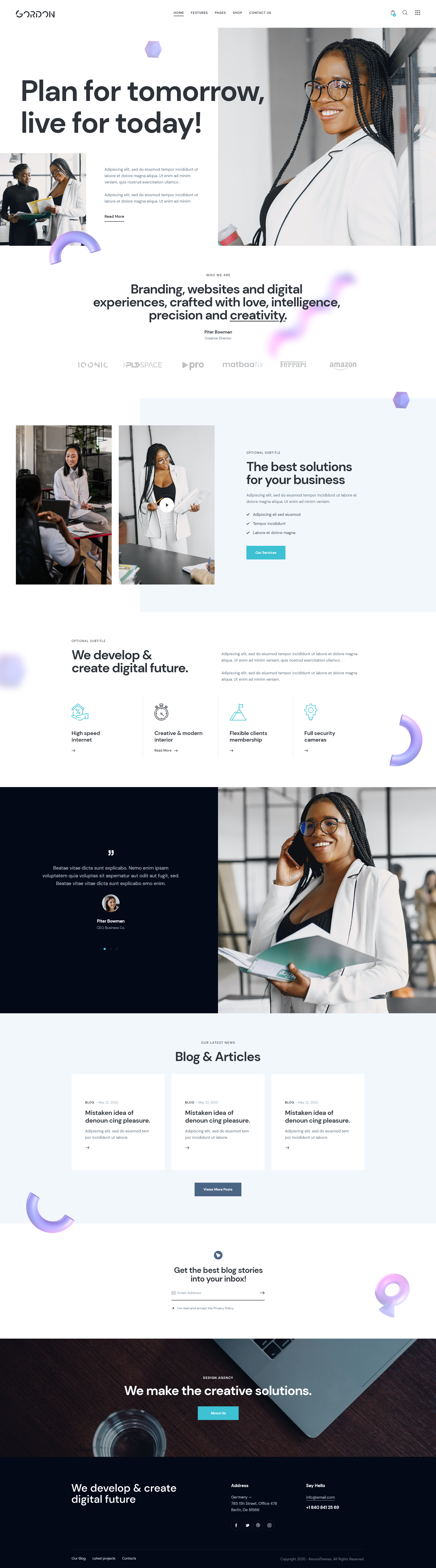 Gordon – fresh & clean Investments & Insurance Company WordPress Theme. It is designed for insurance company, companies that provide business consulting, investment advising, and tax assistance to corporate and individual clients. Also, it works for financial agencies and law companies, and individual tax/finance advisors. In fact, Gordon’s design is quite multi-purpose, so you can use the theme to build any business website, organization or firm.