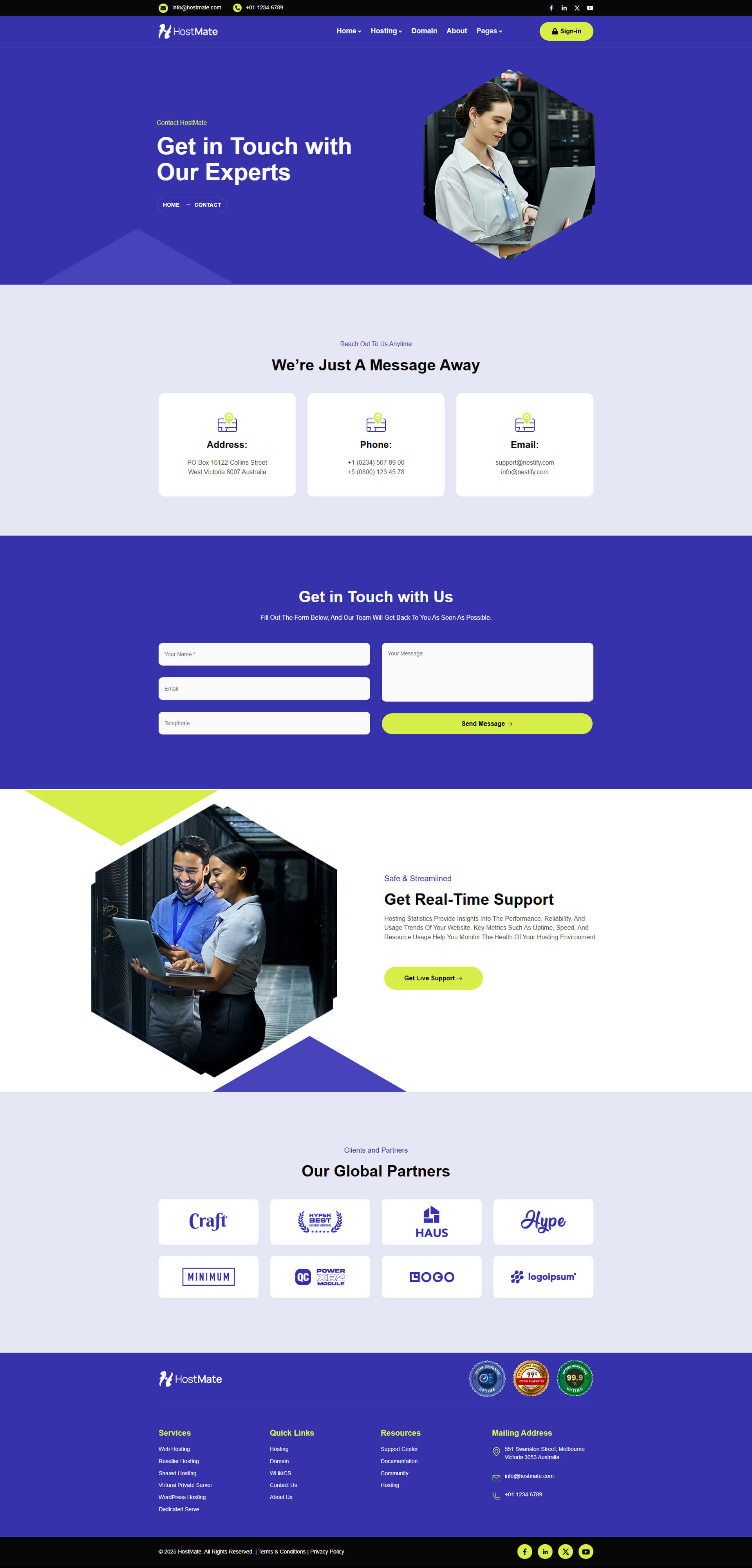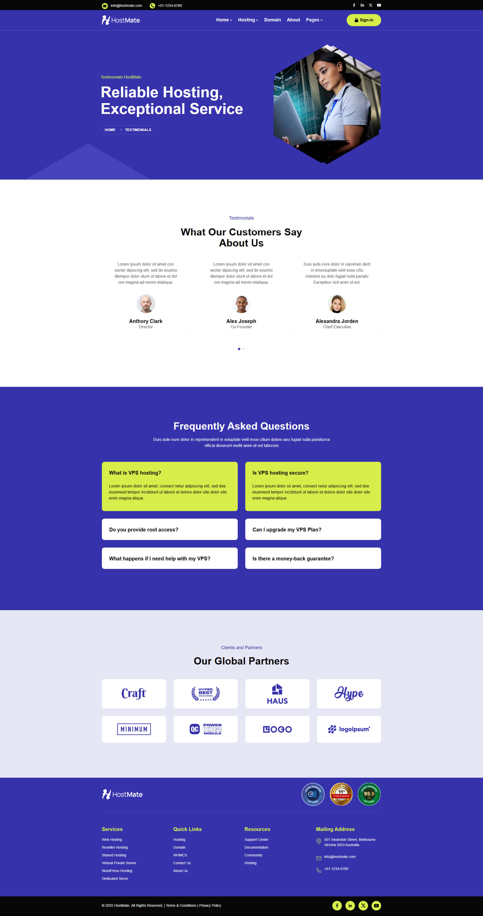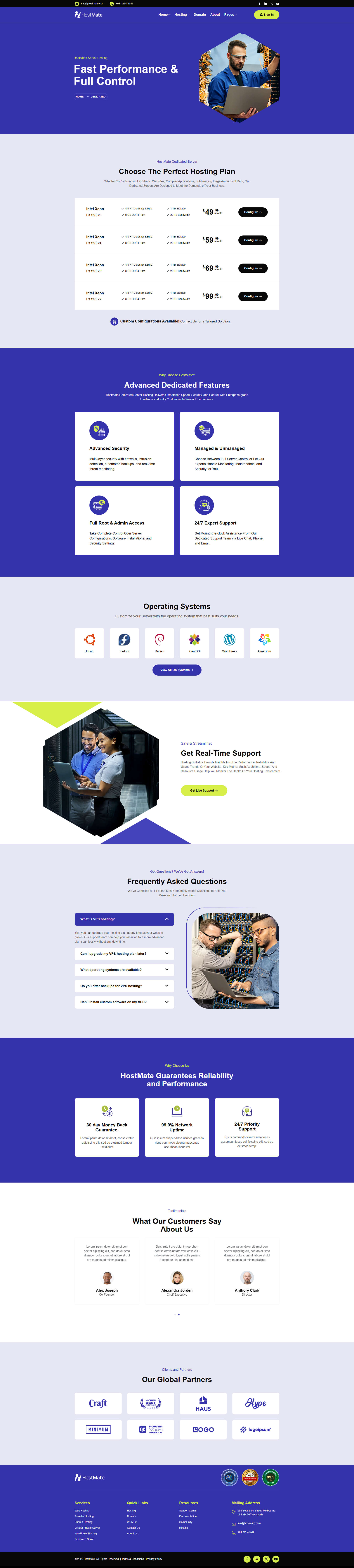 Created to showcase hosting plans, cloud solutions, domain management tools, and customer testimonials, HostMate includes professionally crafted templates and versatile UI components tailored to the hosting industry. With dedicated sections for pricing tables, service comparisons, support content, and more, setting up your website is simple and effective.