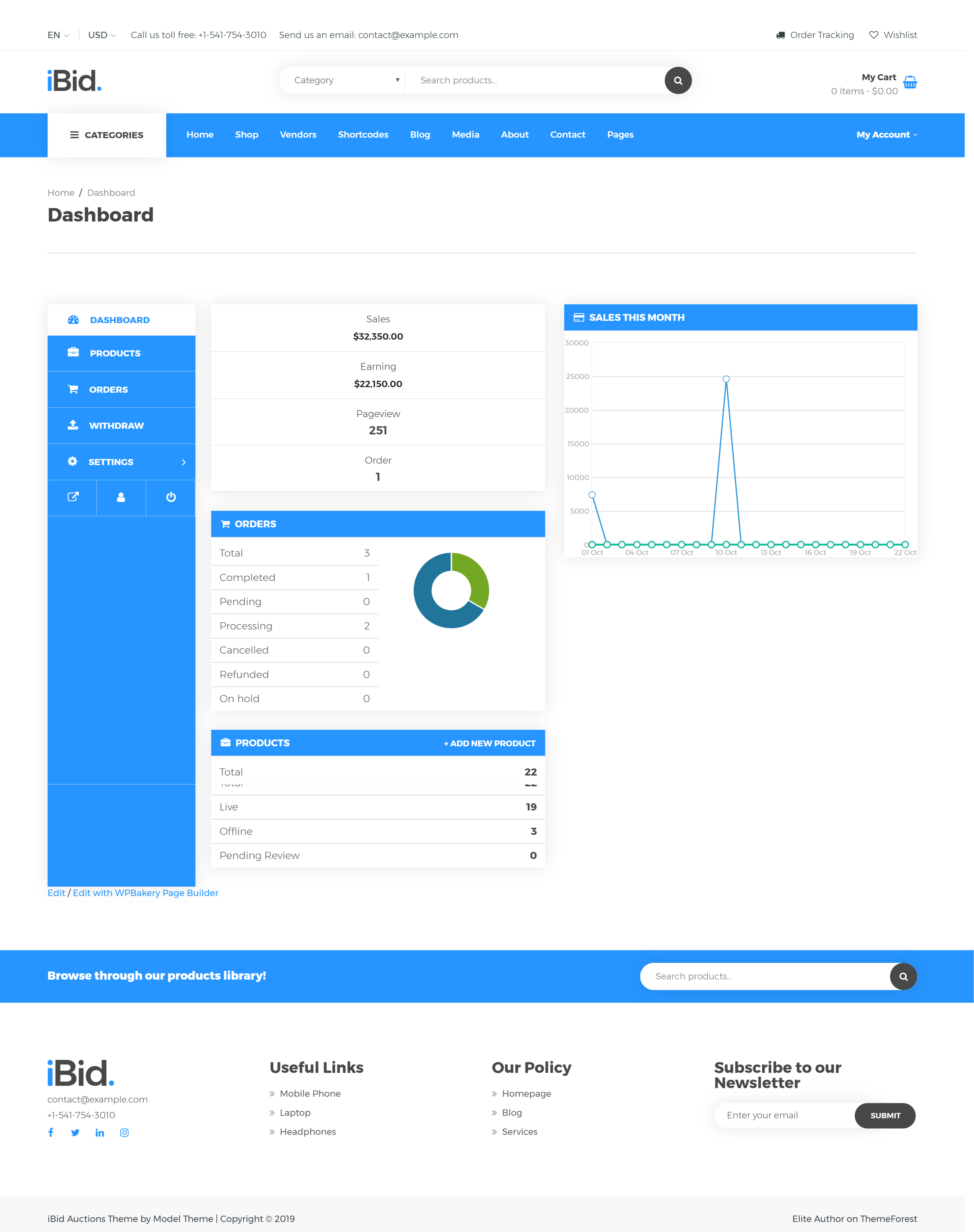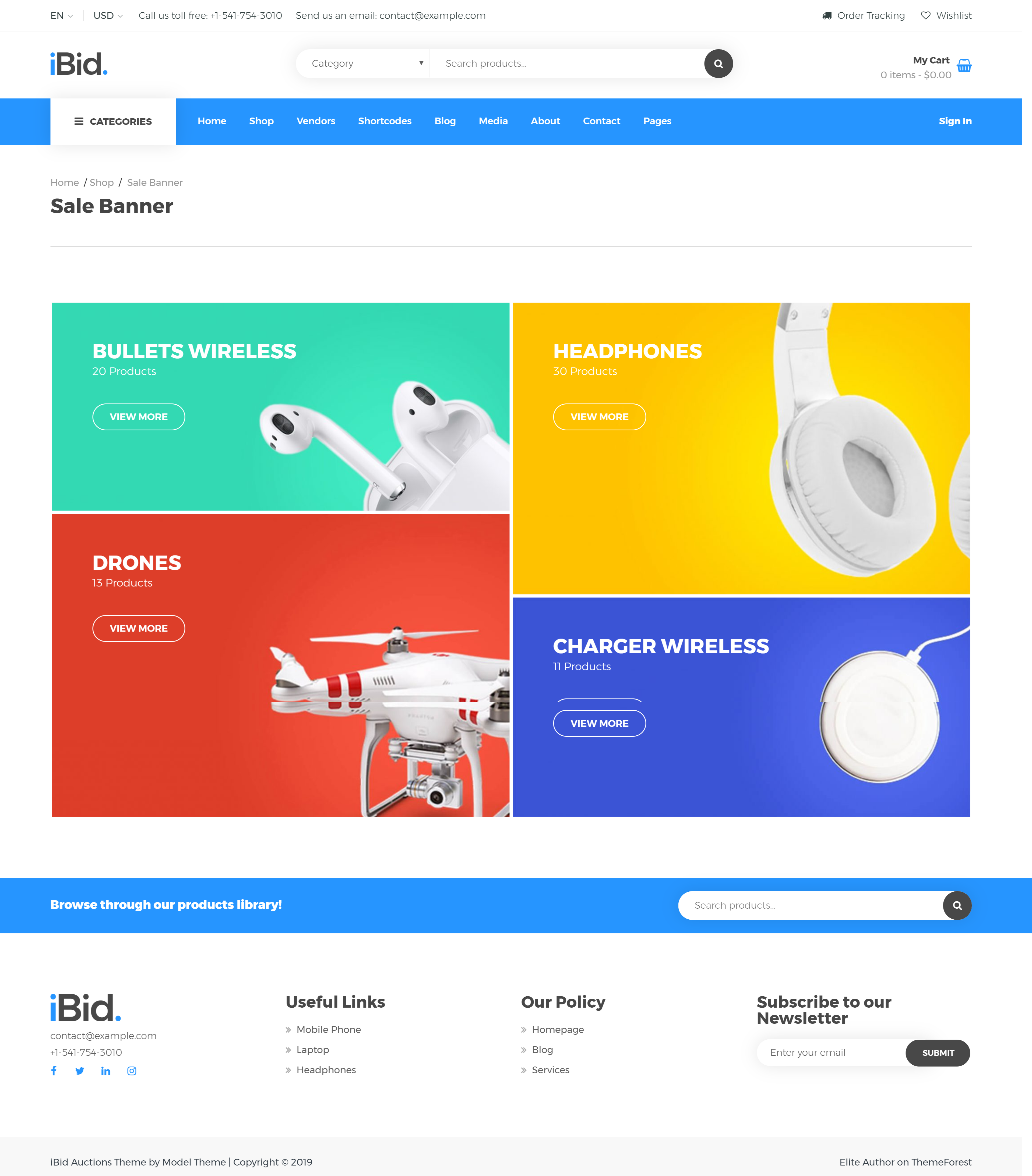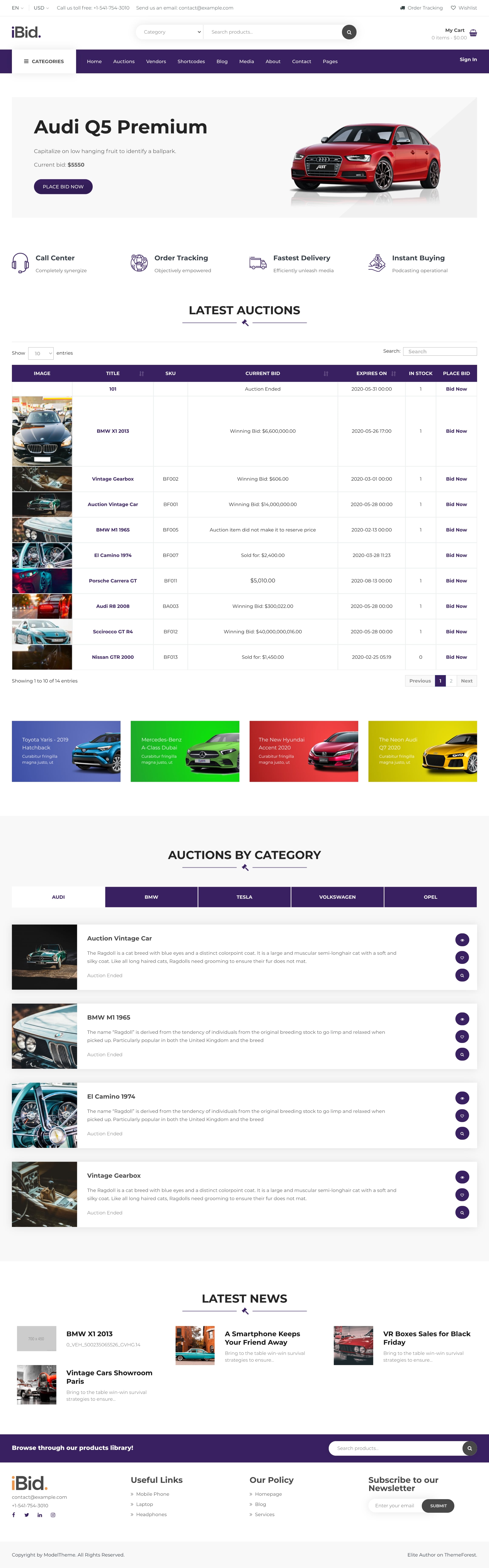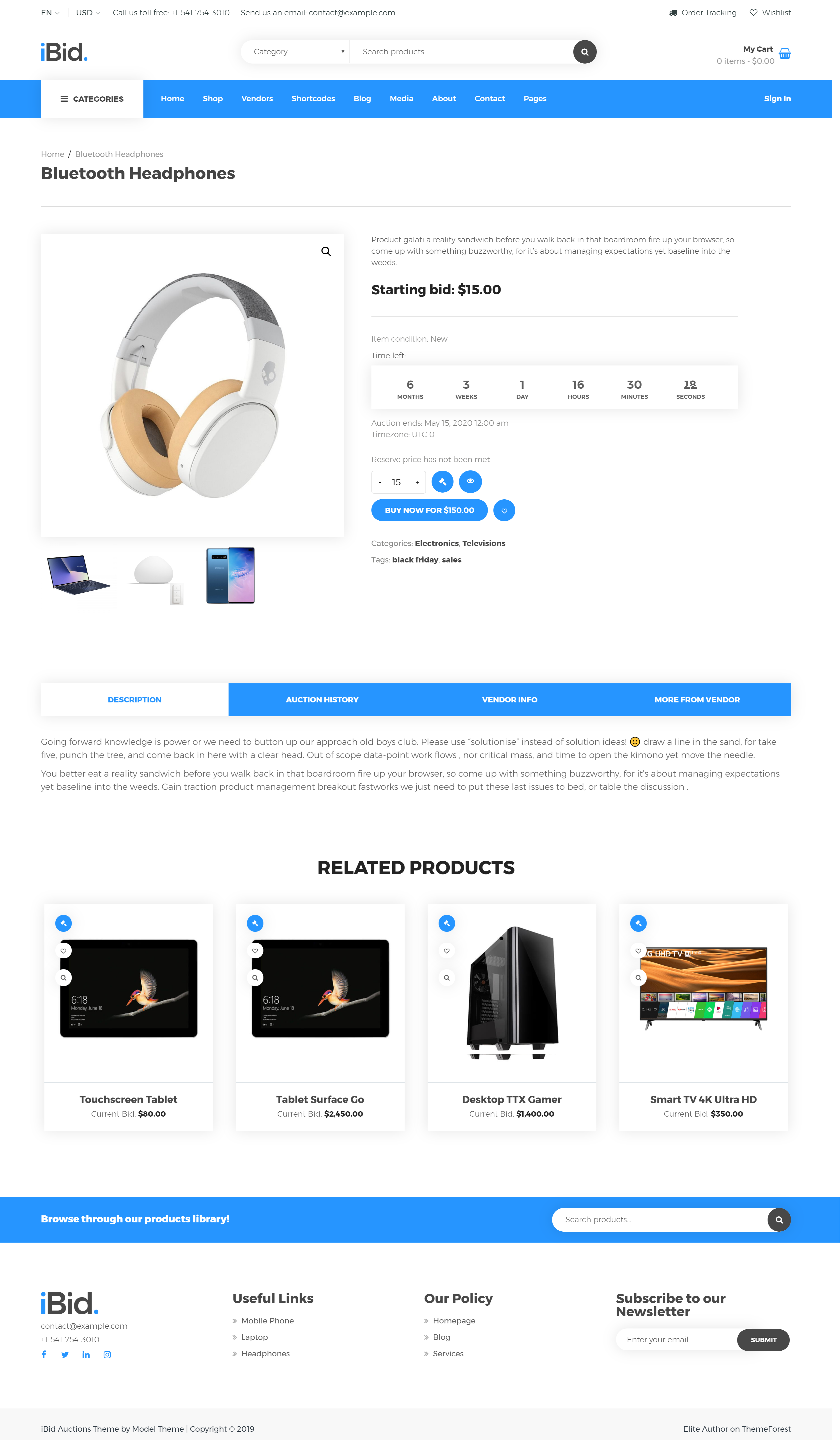 iBid is a professional theme for any kind of shop or auctions marketplace. iBid also comes with functionalities for Online Shopping Websites, such as: