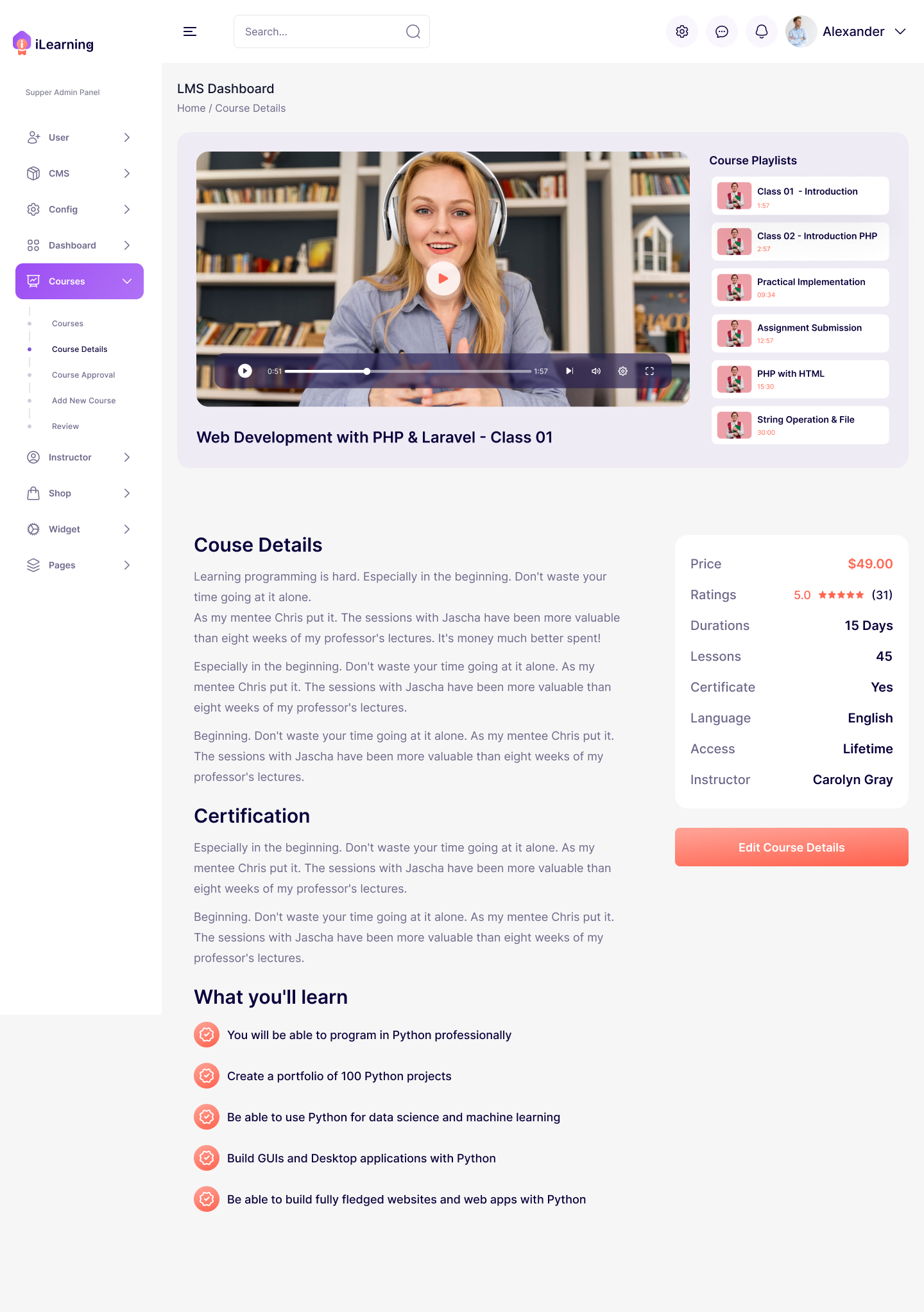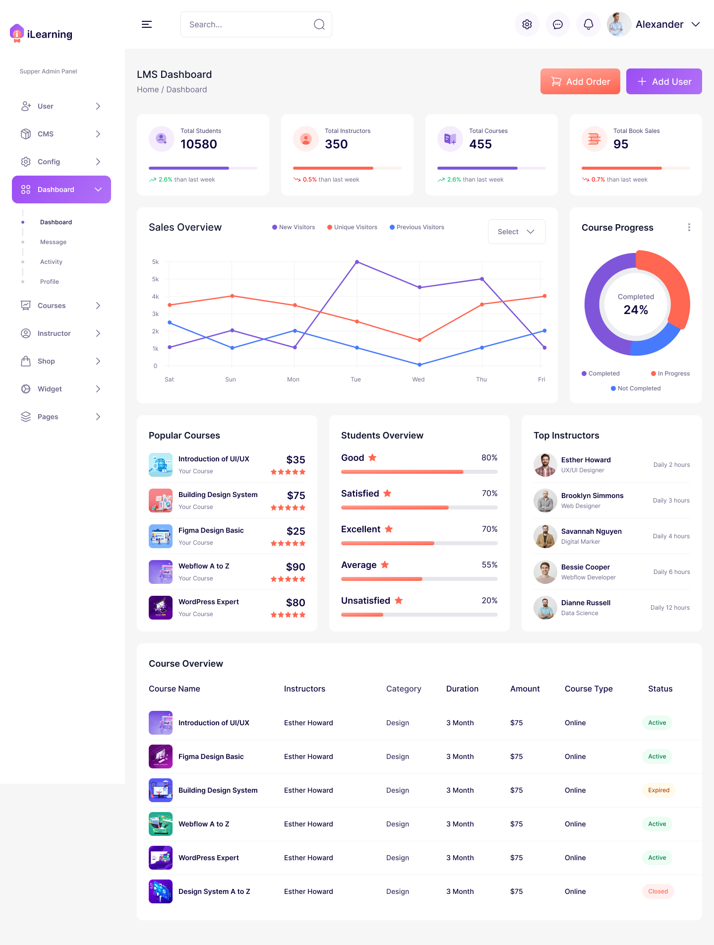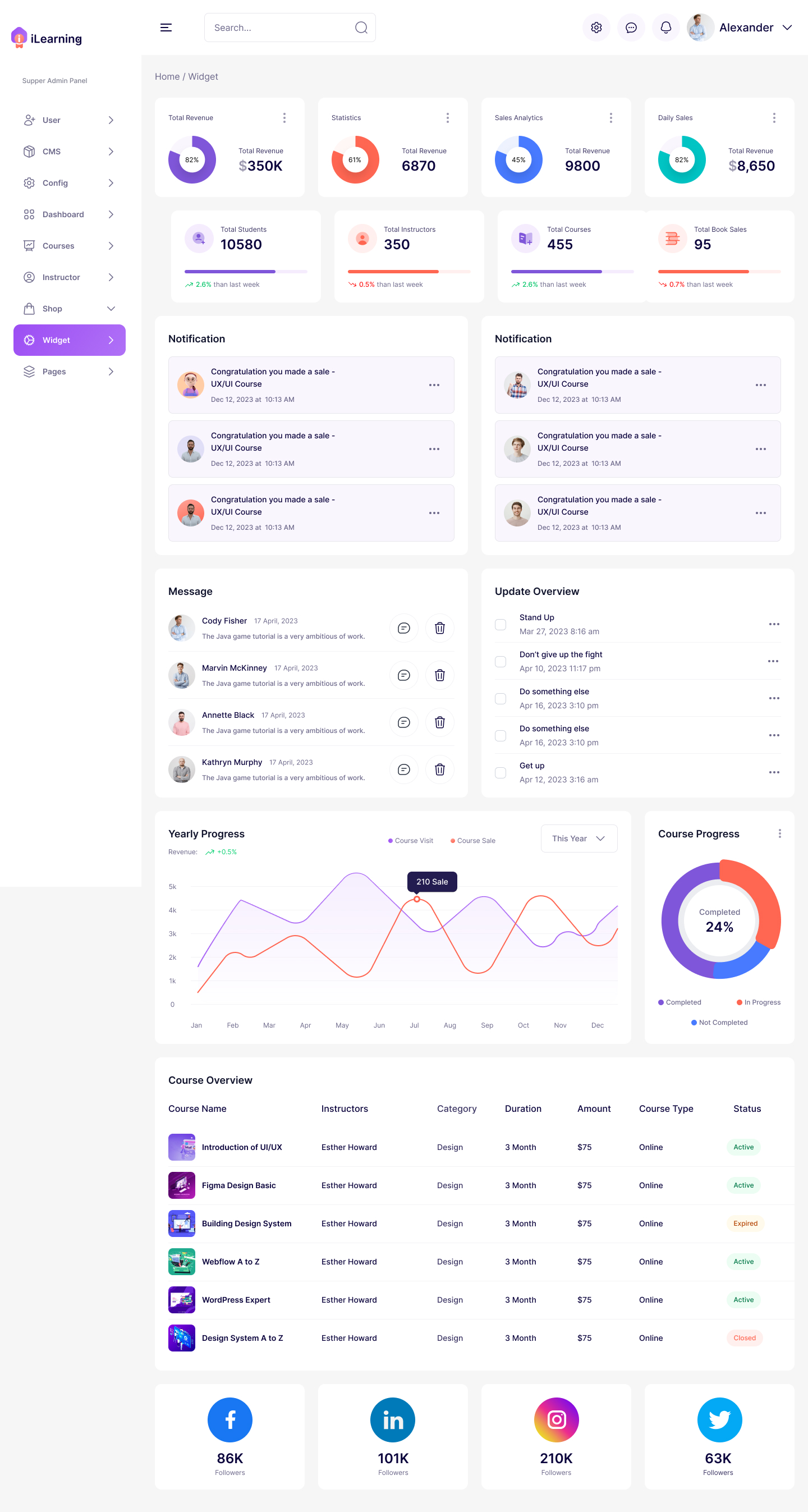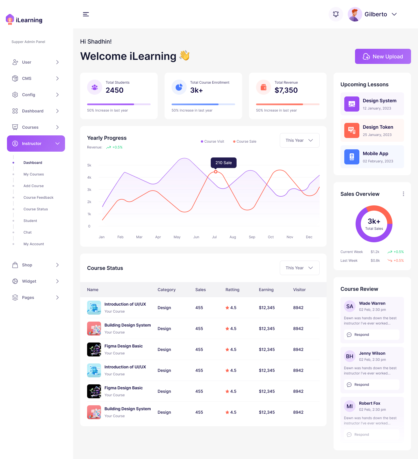 Introducing iLearning – a versatile admin dashboard Figma UI template comprising over 90 high-quality screens, designed for ease of use. With this Figma template, customization is a breeze, as it offers 100% editable features. You can resize and modify all shapes without compromising quality. iLearning is not only a multipurpose admin dashboard but also specifically tailored for education platforms. However, its flexibility allows you to utilize it for various purposes, making it suitable for any project. Its modern, creative, and clean elements enable you to showcase your business attractively to both clients and website visitors. Additionally, this template can be easily converted into HTML or CMS formats, providing further convenience for your development process.