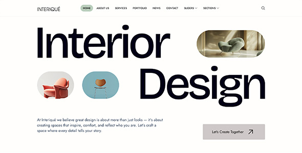 Interique is an Interior Design WordPress theme designed for interior design firms & agencies. Packed with all the features you need for your Interior Design WordPress site. Showcase your interior design projects with style, Attract new clients, and grow your interior design business online. Start with Interique today!