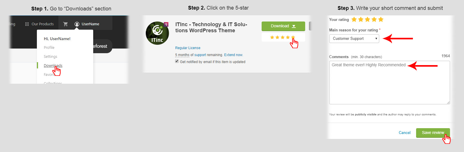 Also we request you to provide us 5-star ratings with great comments. This will help us a lot. Here are steps: