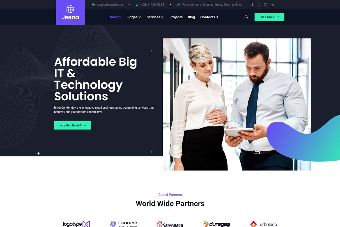Jeena – Technology & IT Solutions Template Kit is ideal for any business website.