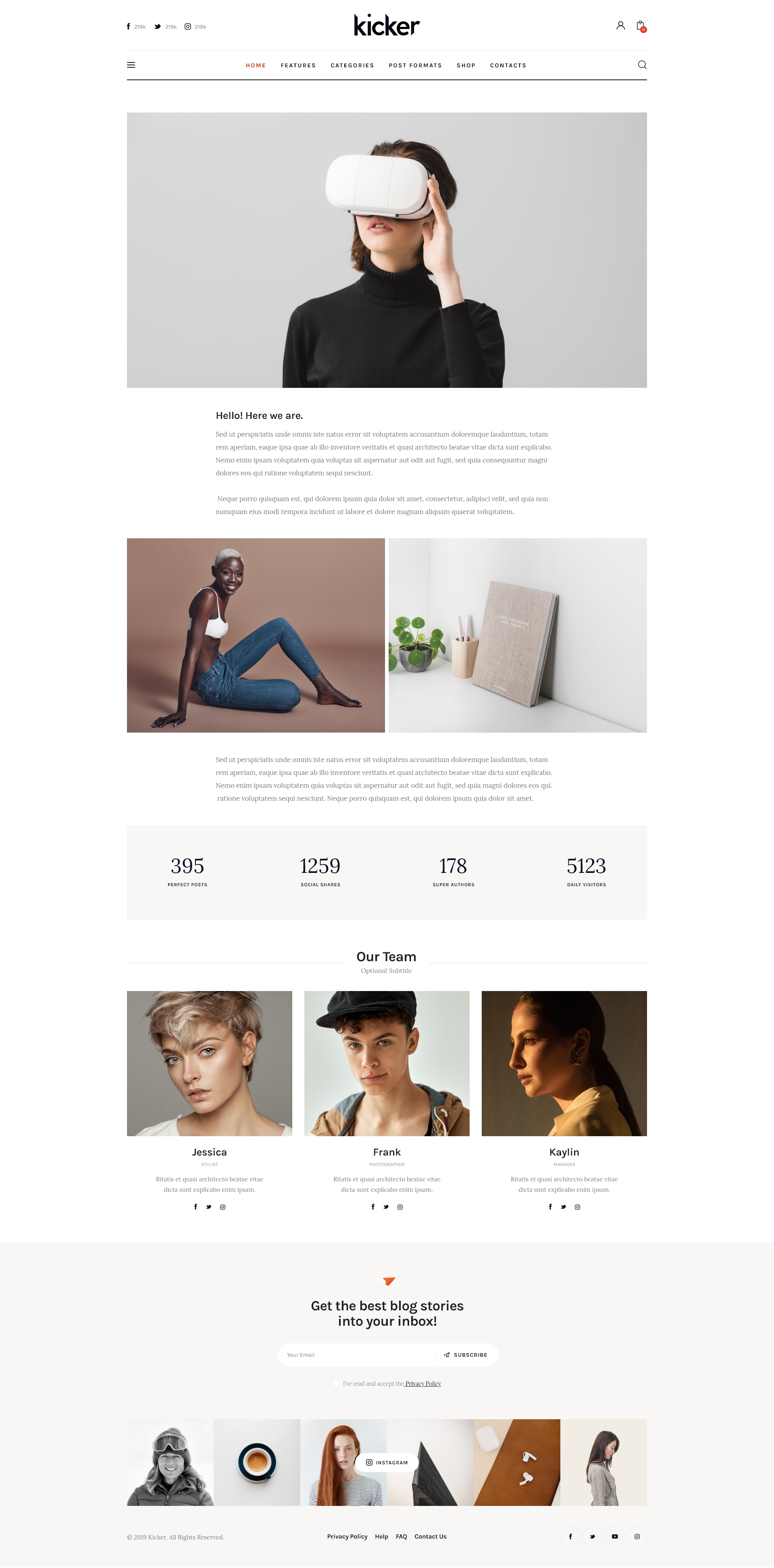 Kicker is a Multi-Purpose Blog WordPress Theme and is splendid for any blog, business news, newspaper or magazine website. It’s a perfect fit for lifestyle bloggers, tech news, personal finance, health, wellness, parenting, business, marketing, food traveling blogs, recipes listings, education, DIY blogs, photography, fashion, affiliate websites, giveaways, guest posting, interviews, travel guides, listicles, case studies, gaming, polls, quizzes, and other niche blogs