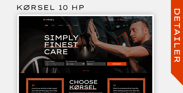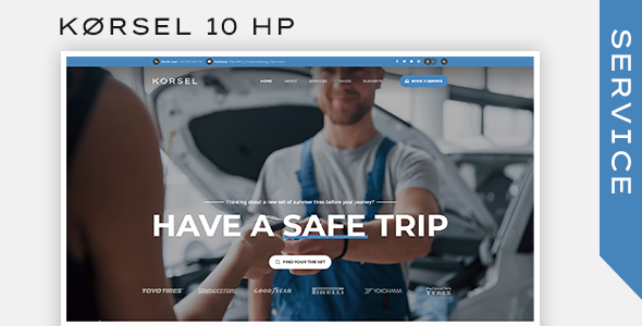 Korsel WordPress Theme for vehicle related services (car service, car cleaning, car wash, tyre replacement, tyre fitting, car repair, wheels fitting, battery replacement, oil change etc) has 10 homepages. It is responsive and retina ready. This theme includes a number of premade inner pages but you can also easily build your own with fast Bold page builder.