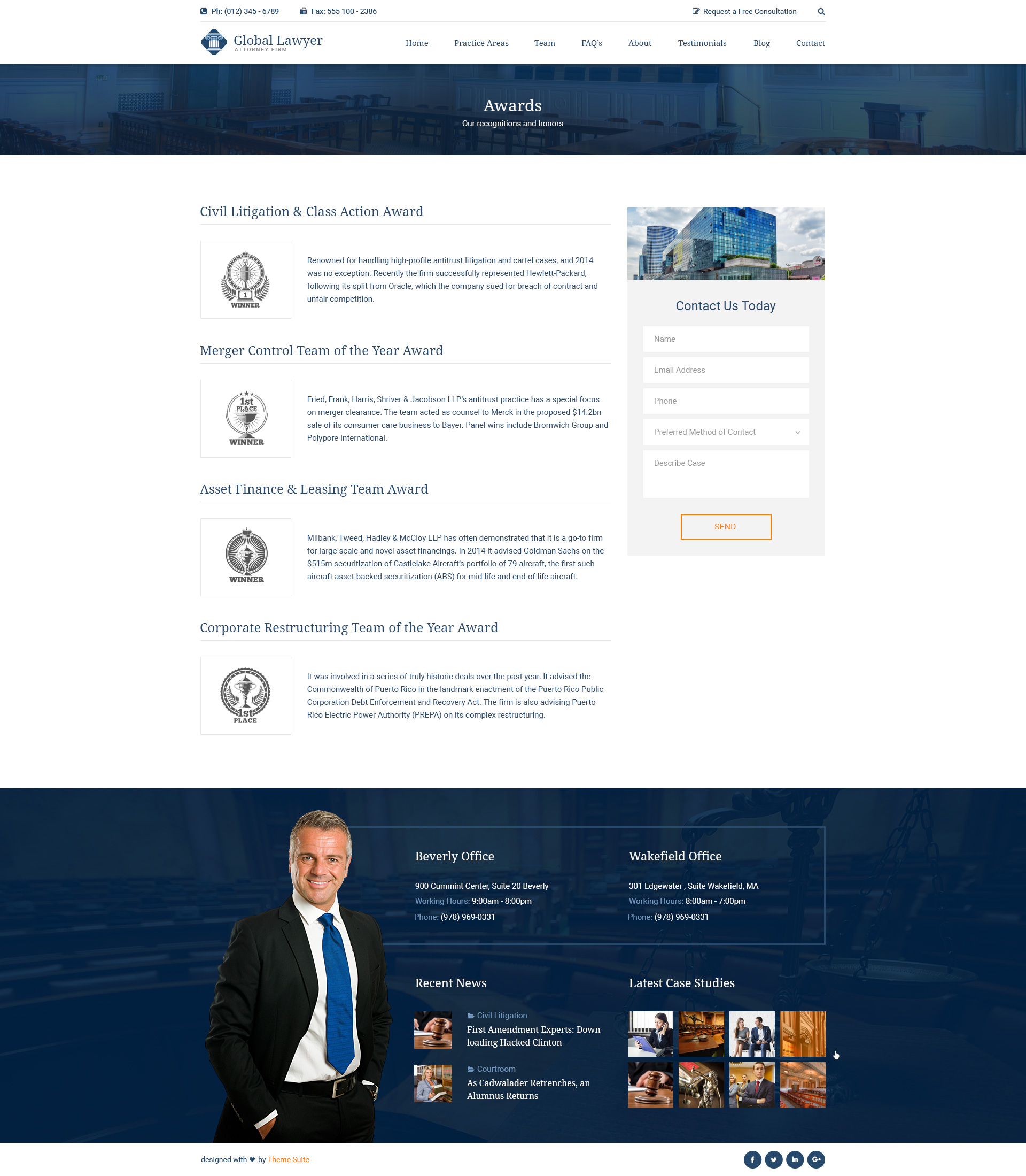 - Testimonials, Awards, & Attorneys – industry specific