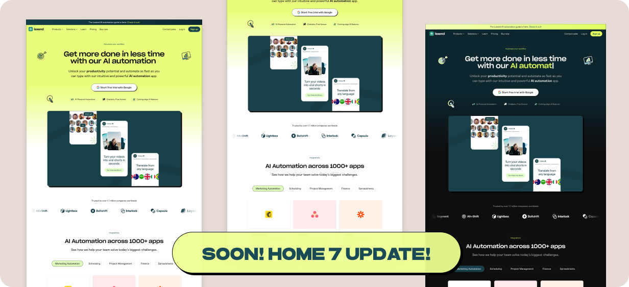The comparison pricing table already done! and Home 7 it’s now 90% on progress and the update will come up sooner!