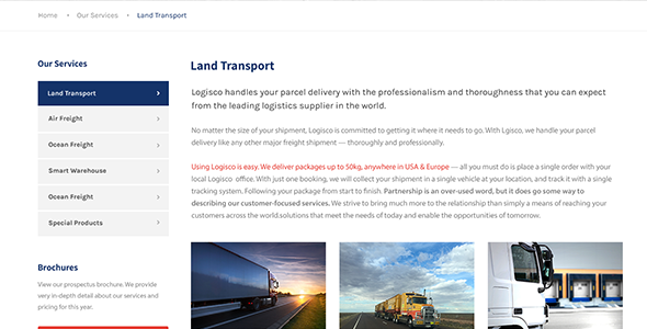 Logisco – Logistics & Transportation WordPress Theme is a modern and responsive WordPress Theme especially designed for logistics, logistics company, ship, shipping, storage, transport, transportation, warehouse, truck, contractor, logistic, trucking, courier, delivery, freight, cargo company. Logisco is one of most powerful logistics & transportation theme in the market.