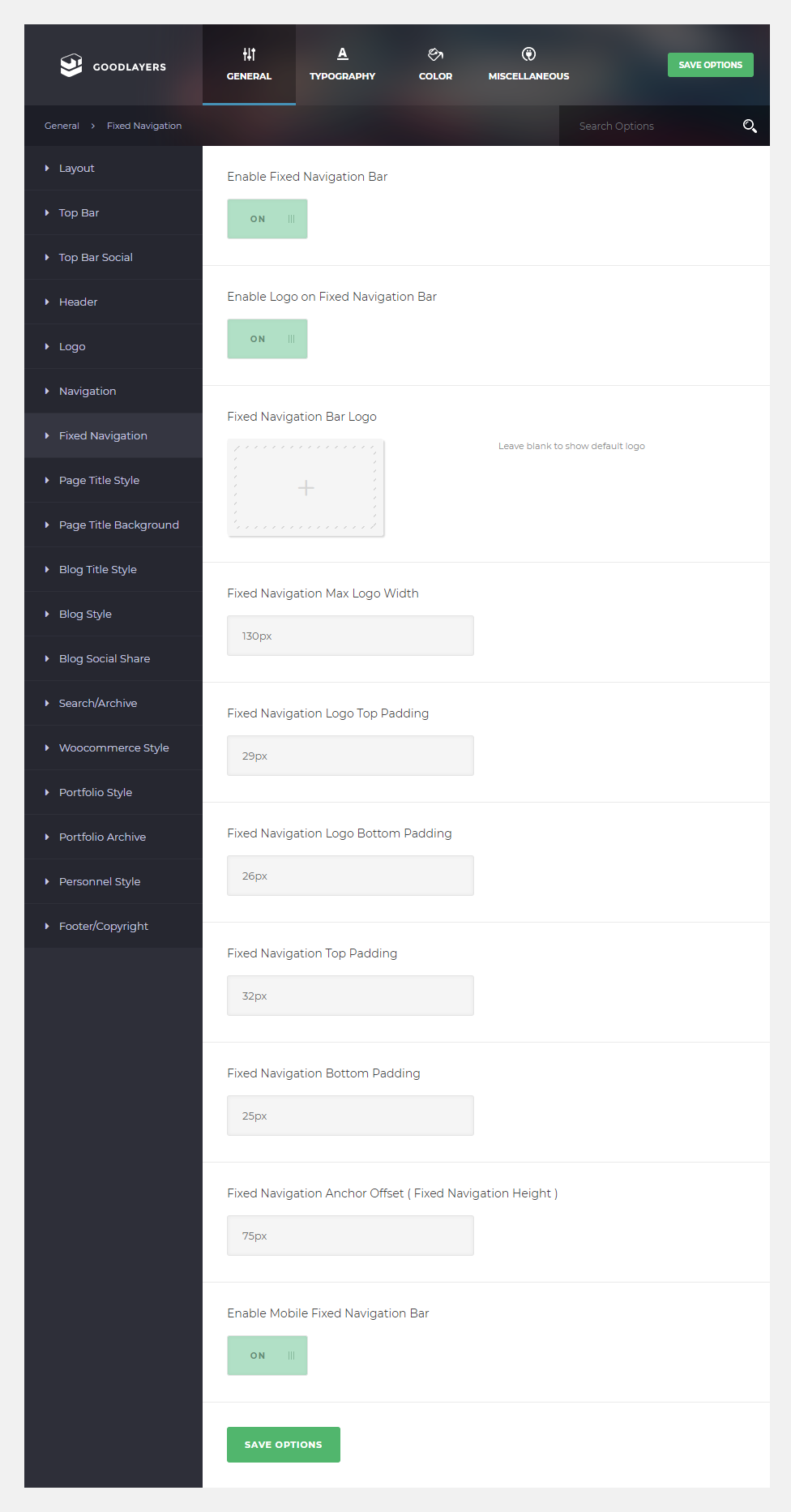 - Top Bar – You can choose to enable top bar on top of all headers styles