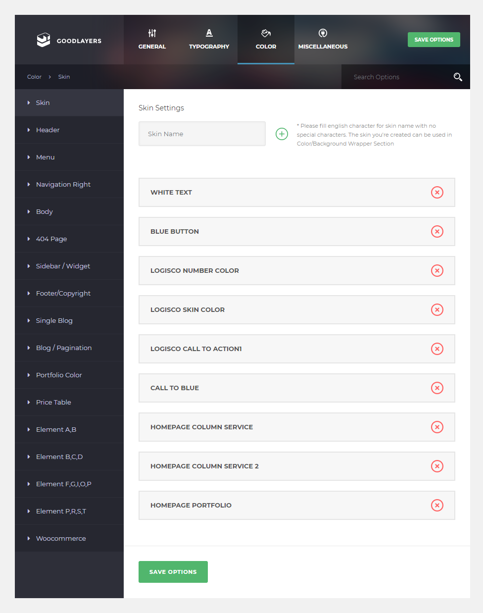 - Custom Skin Color – You can create custom skin color to use in page builder wrapper. For example, if you have three sections of wrapper in a page, you can create skin and use them in each section.