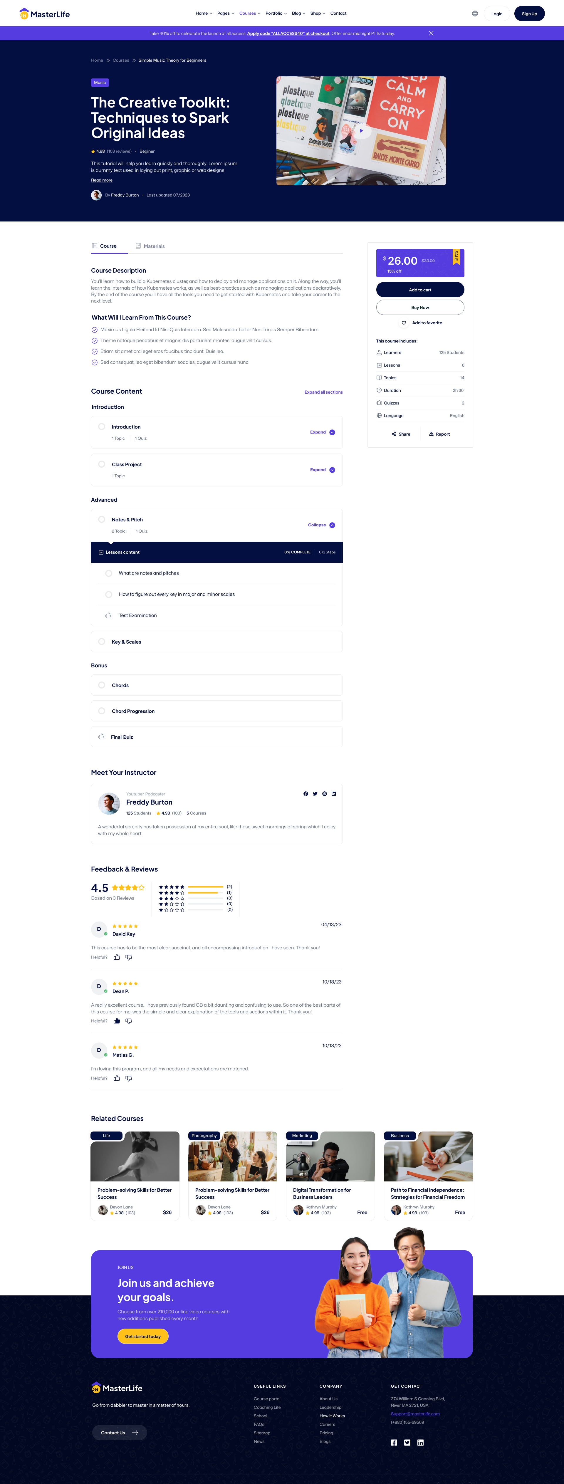 MasterLife Template is designed which is ideal for Coaching Course & LMS Education Figma Template. The design is very elegant and modern, and also very easy to customize Coaching Course & LMS Education Figma Template, great looking and simple in use. All pages, screens, popups and states are in one file. A template is divided into pages and almost every page is divided on art boards, which contain different states or versions of the page.