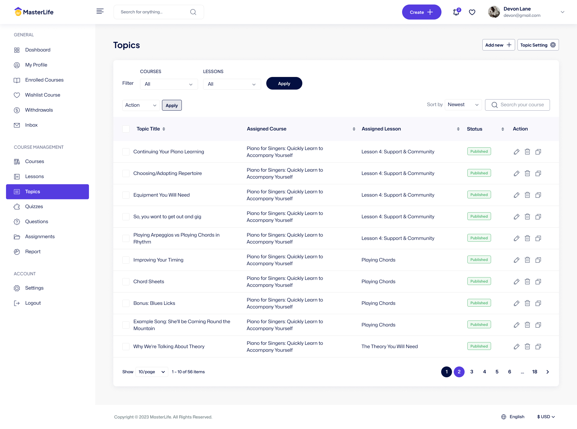 - 65 Add New Course