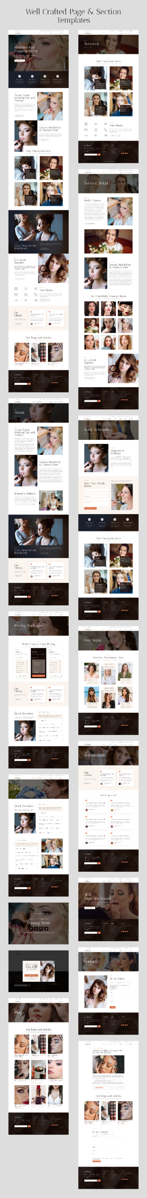 Menor is an Elementor Pro Template Kit for creating websites in WordPress using the Elementor Page Builder plugin. Menor’s templates are carefully designed to cater specifically to makeup artists and hair stylists, ensuring that your website reflects your expertise and professionalism.