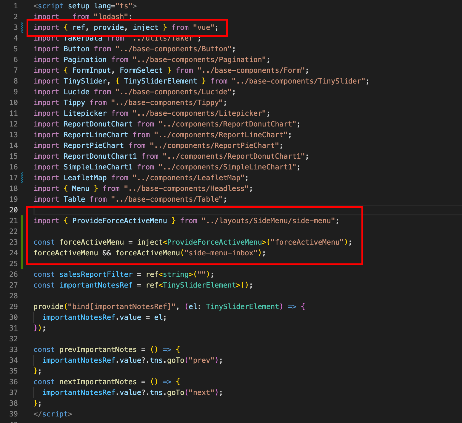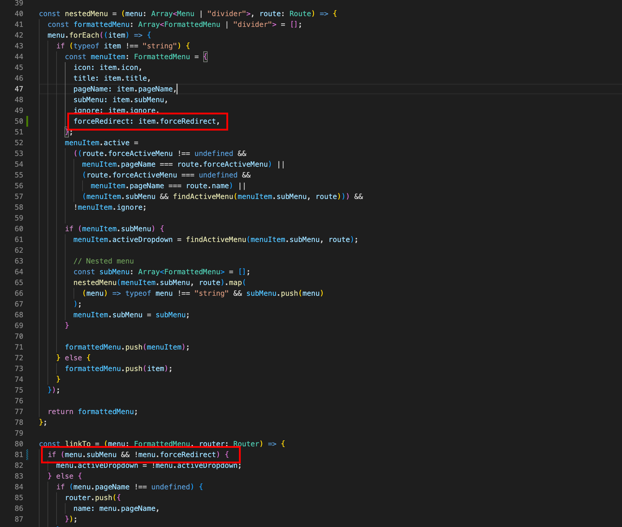 Next, we’ll navigate to the file at ”/src/layouts/SideMenu/side-menu.ts”. Inside that file, add the following line of code: