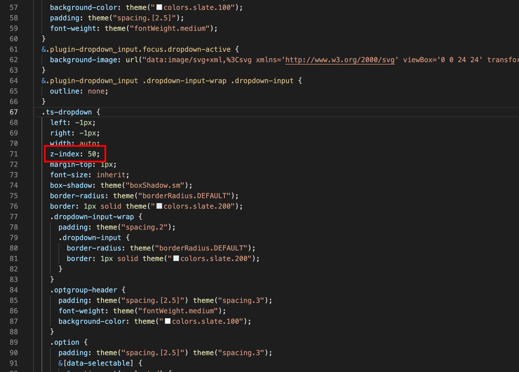 It looks like there might be a small issue with the ‘z-index’ property. Don’t worry, I’ll guide you through the steps to fix it. Please open the file ’/src/assets/css/components/_tom-select.css’ and locate the selector ’.ts-dropdown’. Once you find it, you can simply adjust the ‘z-index’ value to make sure it’s higher than the canvas of Chart.js.