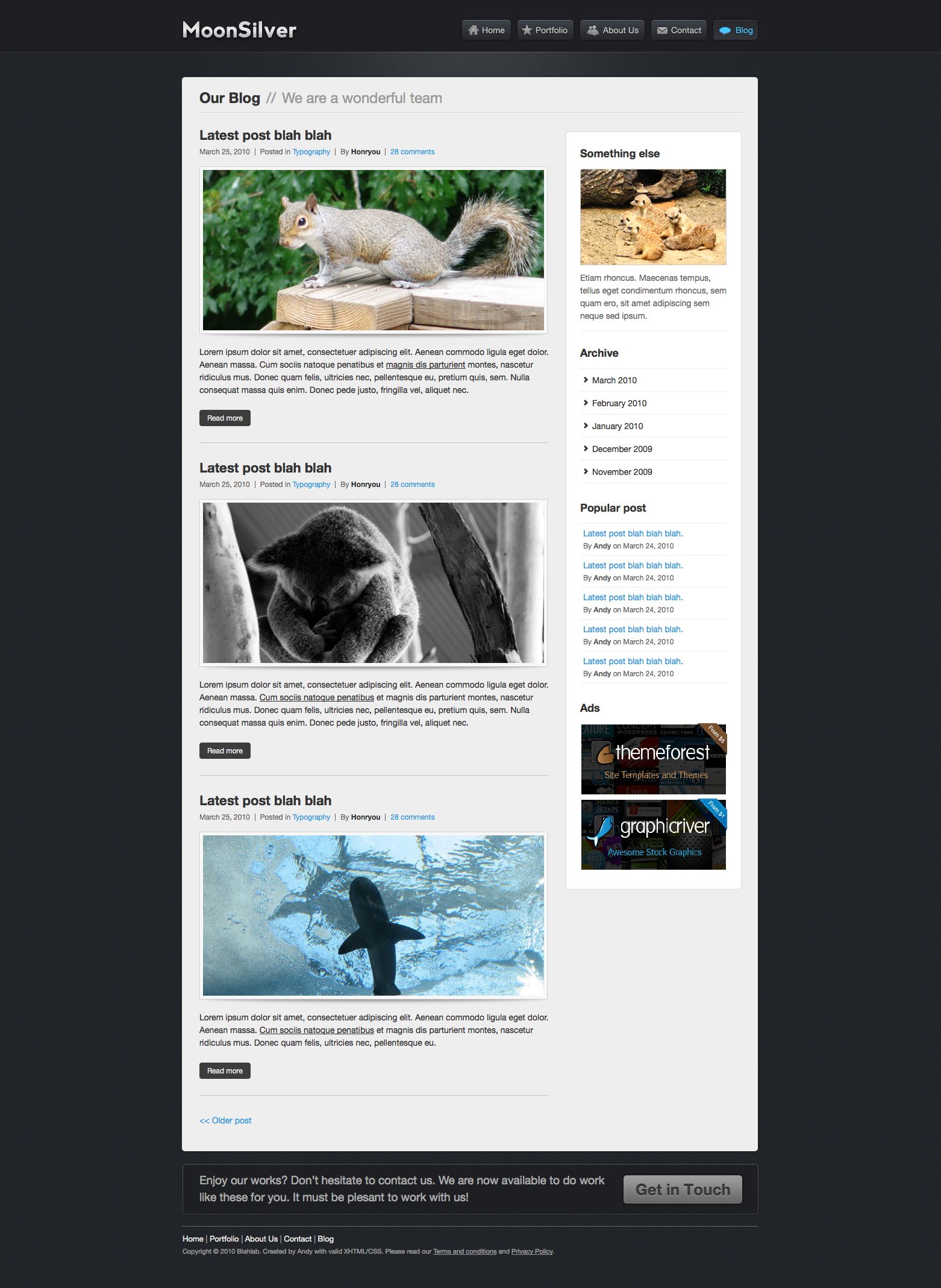 MoonSilver is a clean and modern XHTML/CSS theme with 7 page templates.