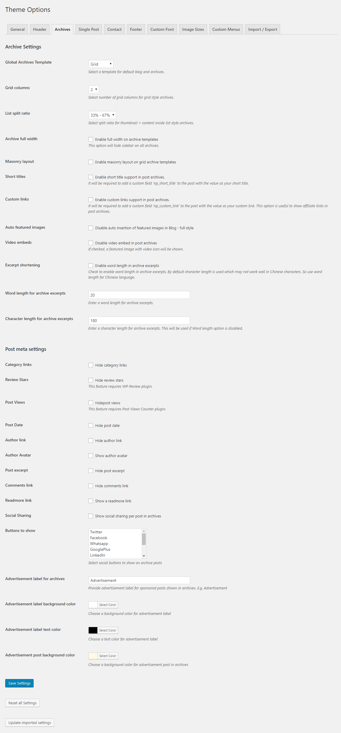 - Add global advertisement label for ad posts in archives (See Theme Options > Archives )