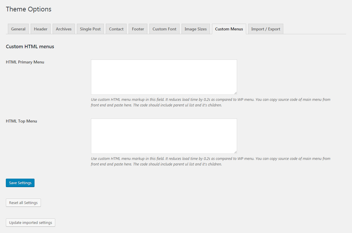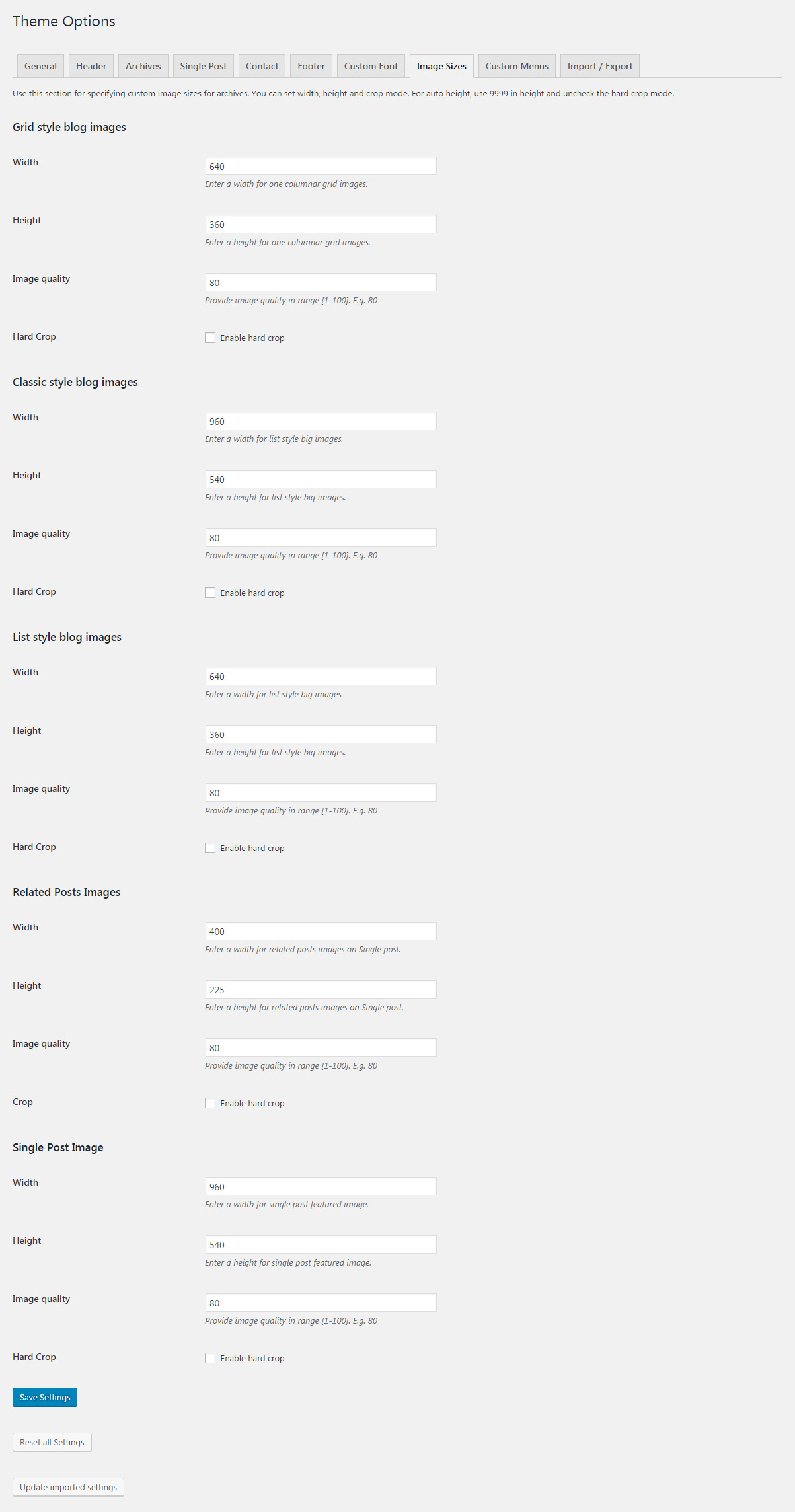- Image quality can be set from theme options(useful for serving scaled images at optimized quality)